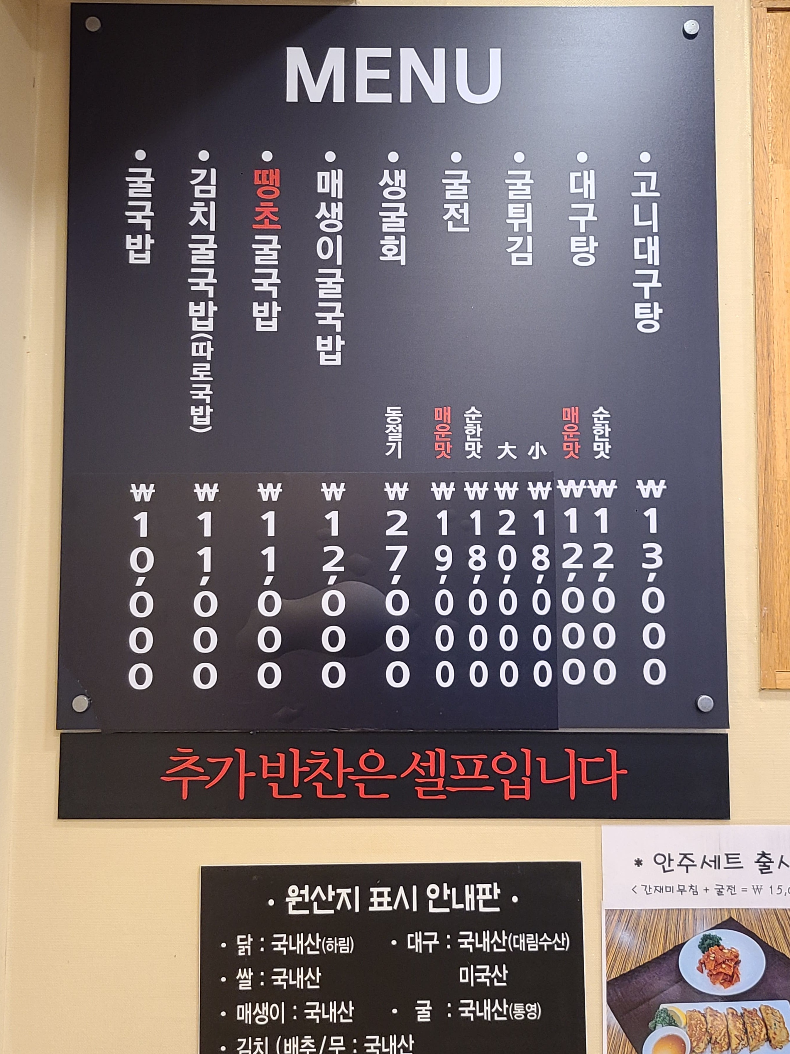 메뉴판을 훑어보았는데 굴국밥 외에도