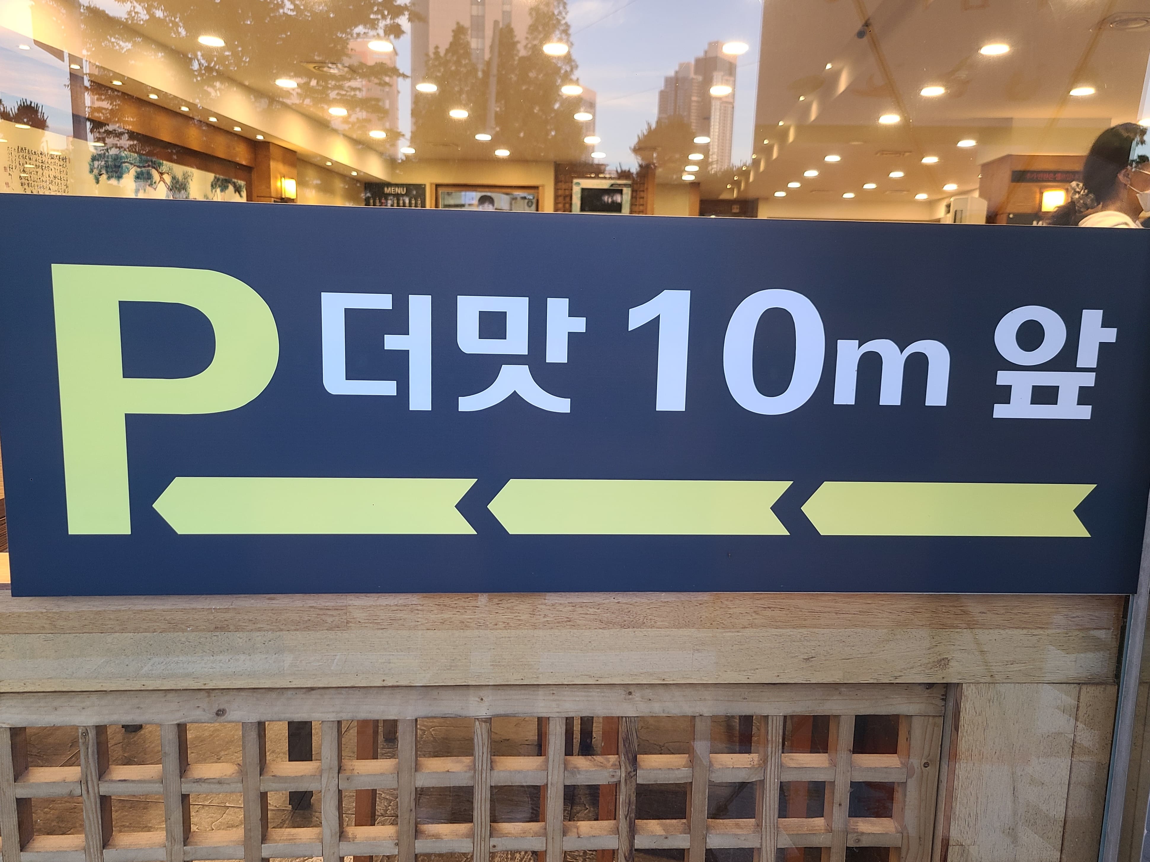 주차장은 10m 떨어진 곳에 '더 맛'이라는