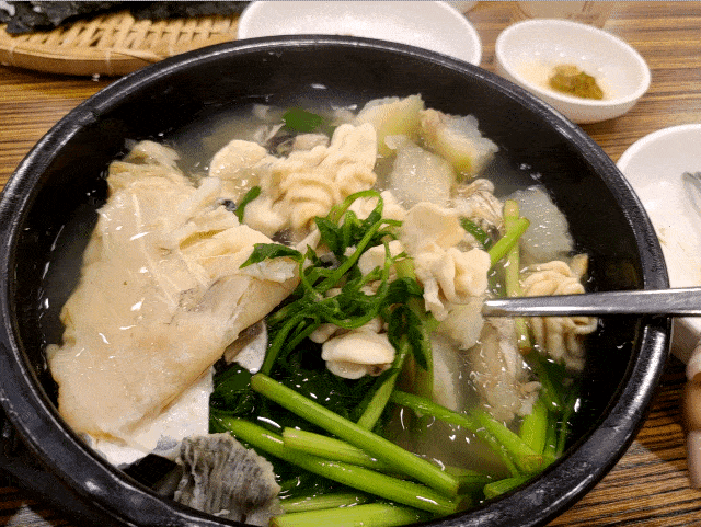 탕 안에 살코기와 고니가 엄청 많이 들어있다