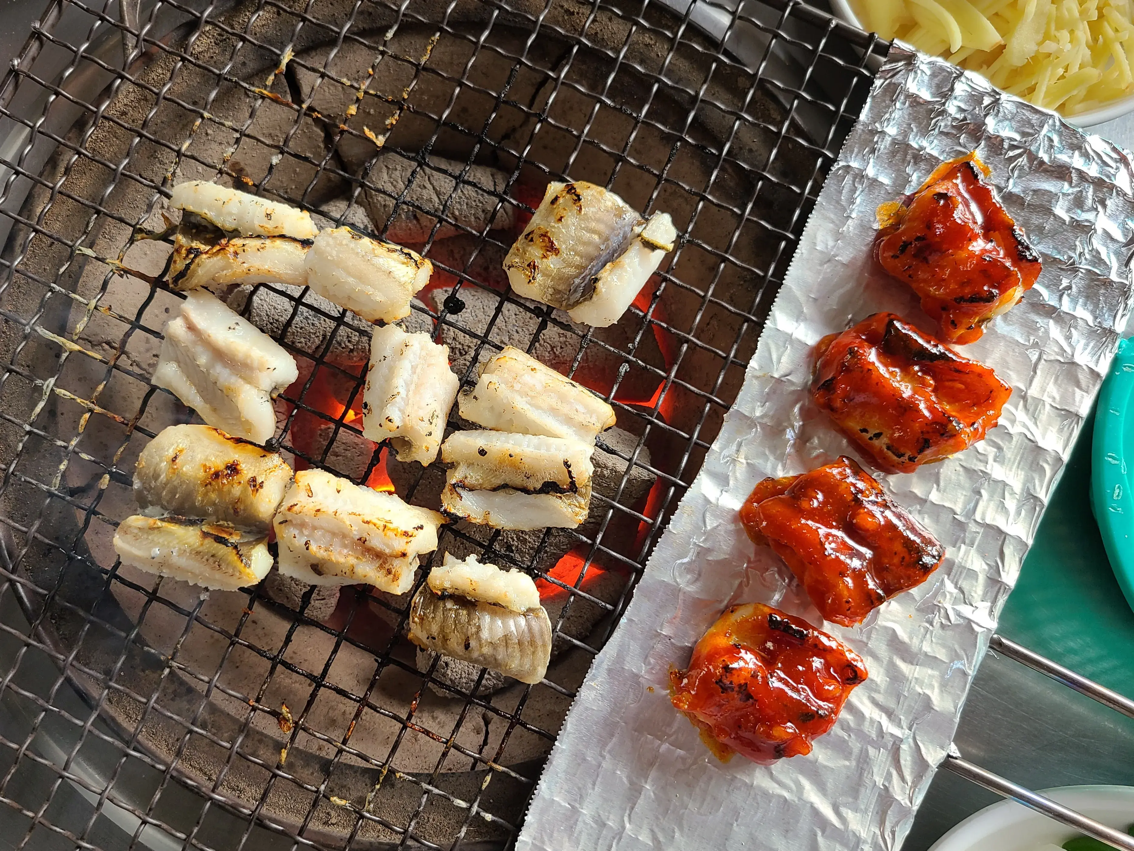 불판 옆 호일에 가지런히 놓아준다