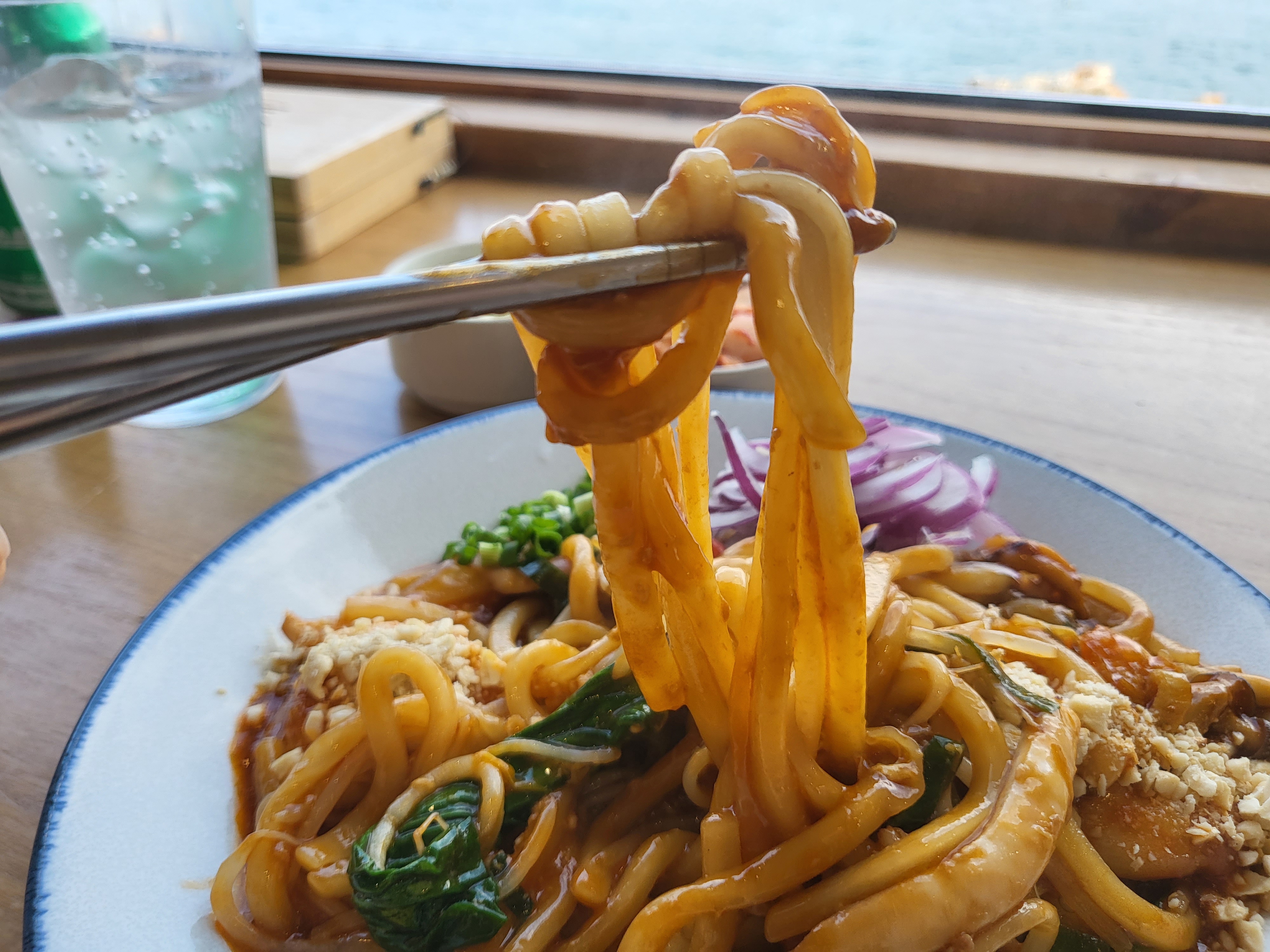 야채와 해산물이 들어간 볶음우동이다