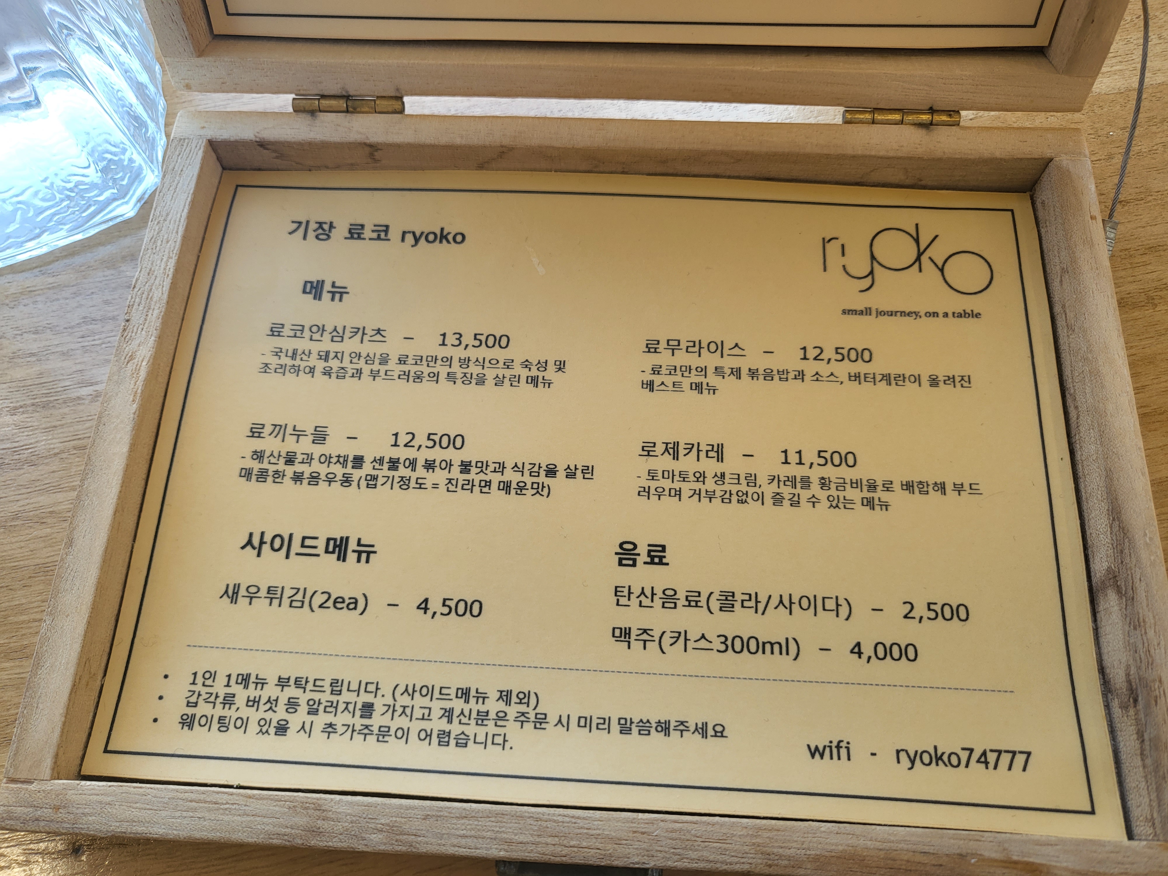 메뉴판이 상자처럼 되어있는데 예쁘다
