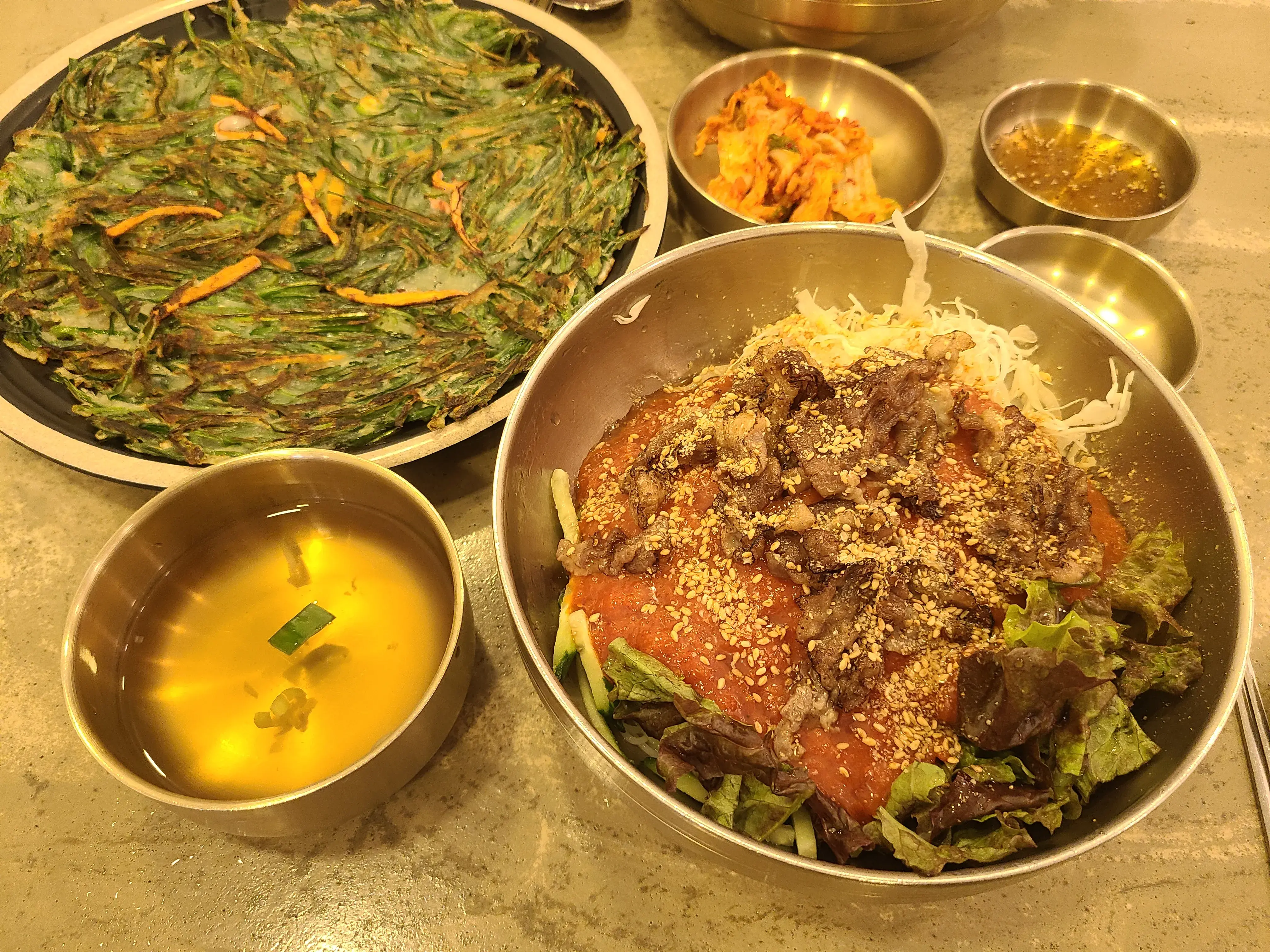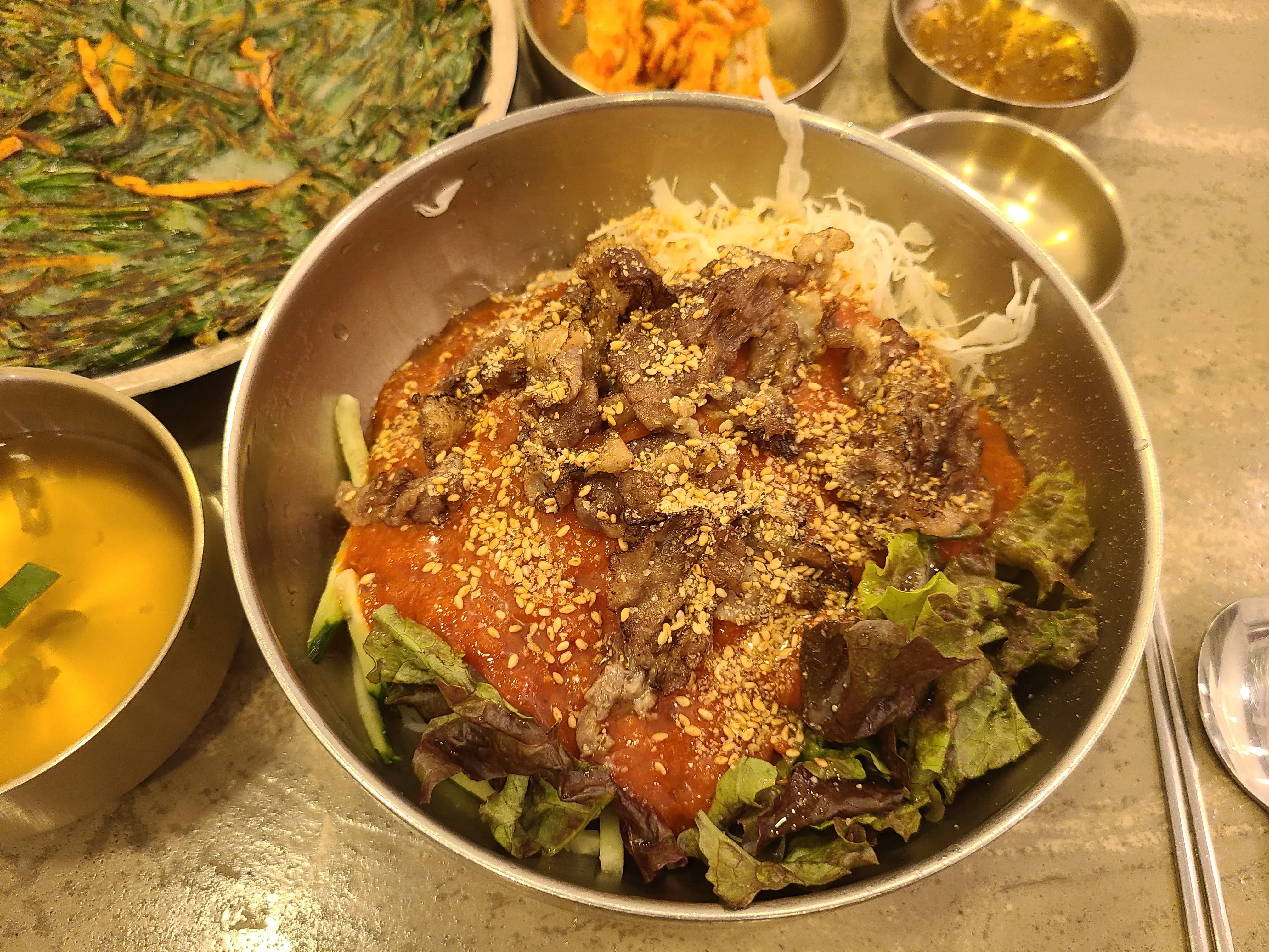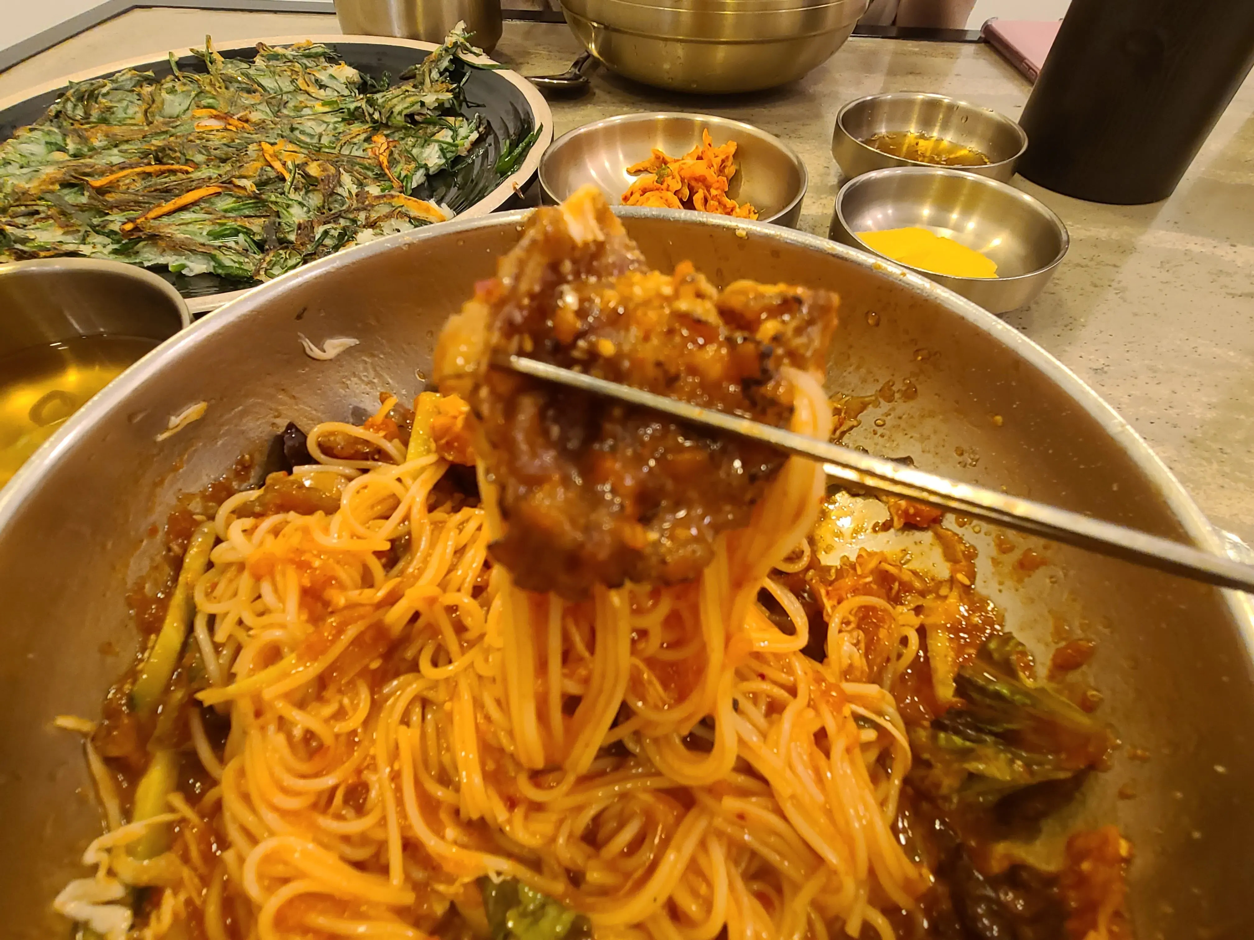 차돌박이 비빔국수와 부추전