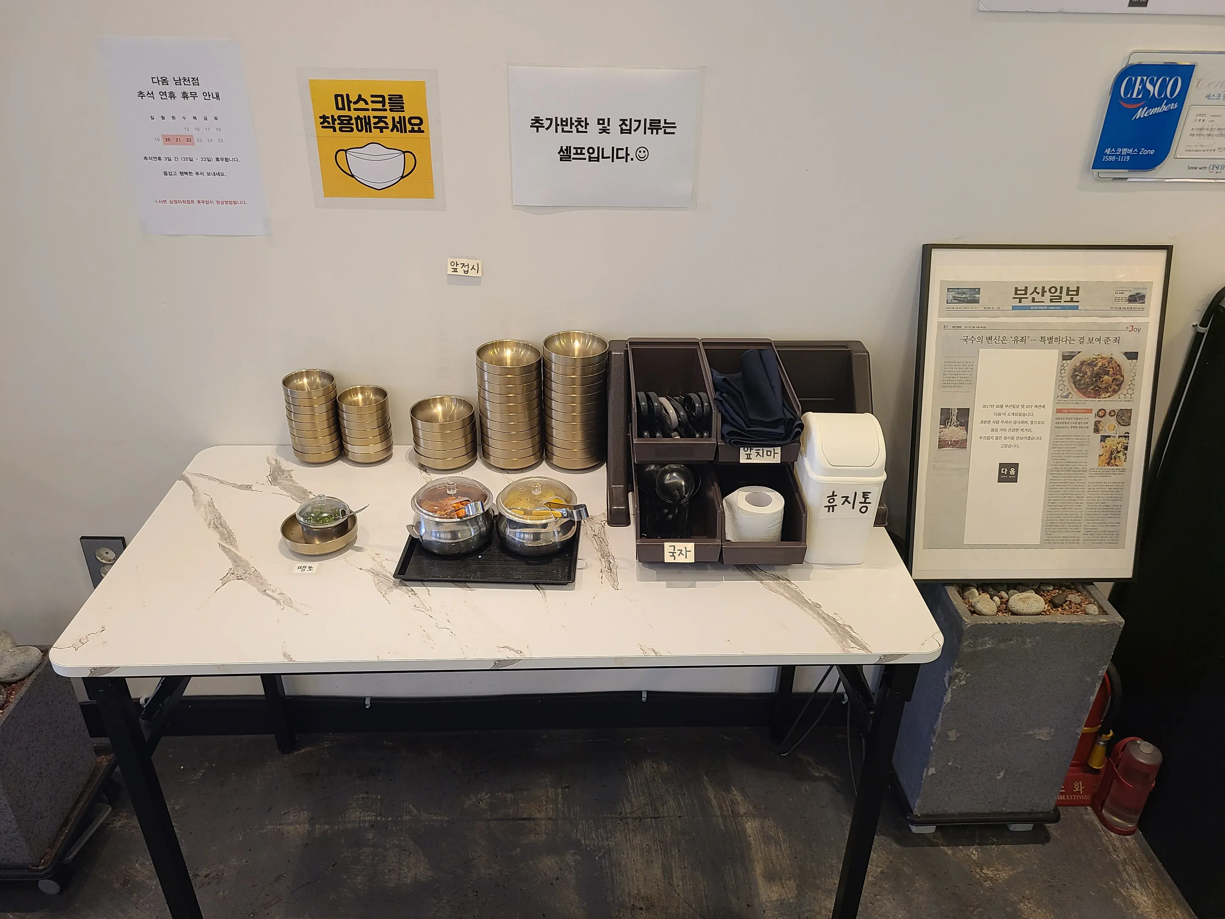 추가 반찬은 셀프로 가져다 먹을 수 있다