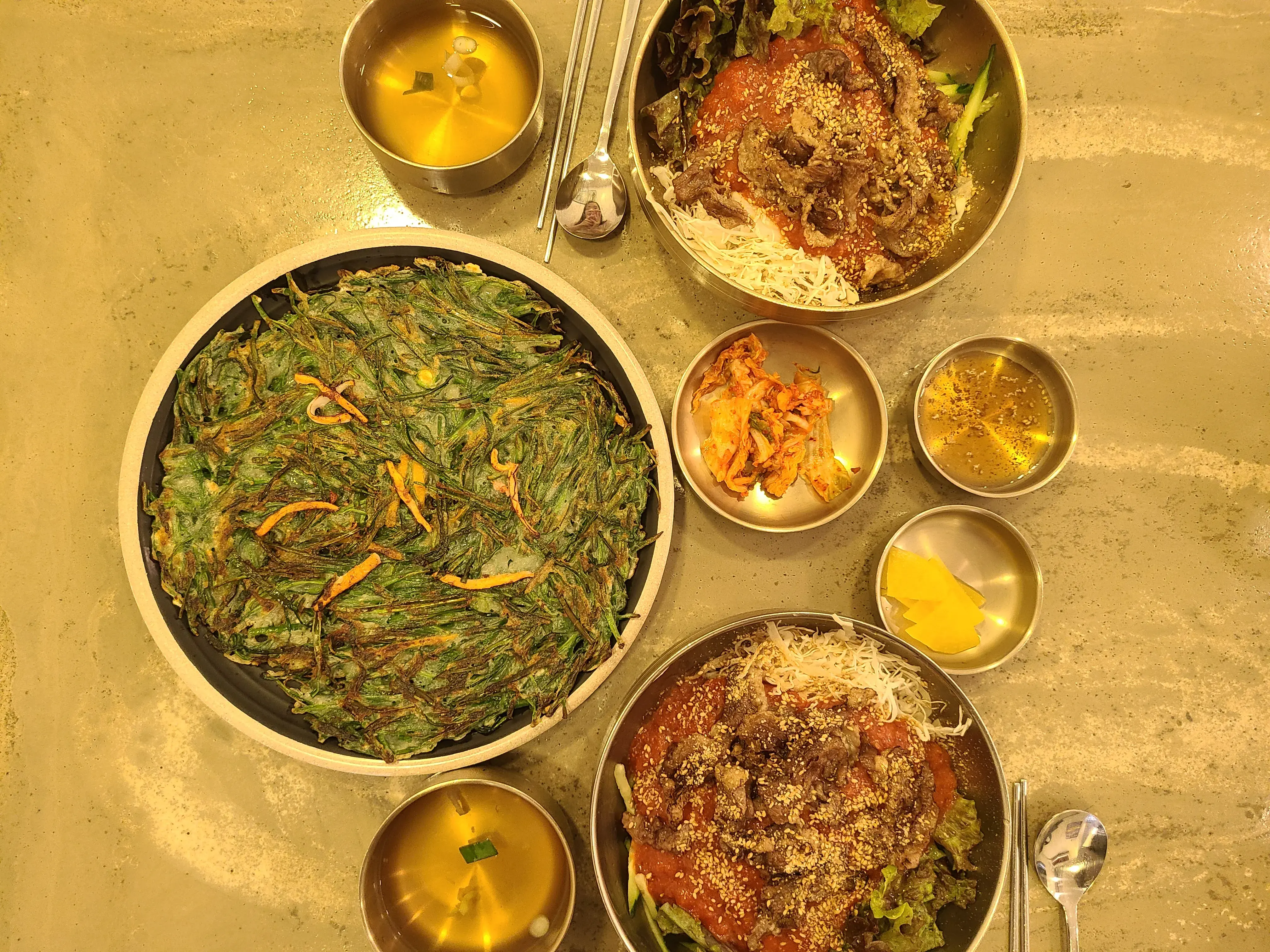 차돌박이 비빔국수 2, 부추전 1을 주문했다