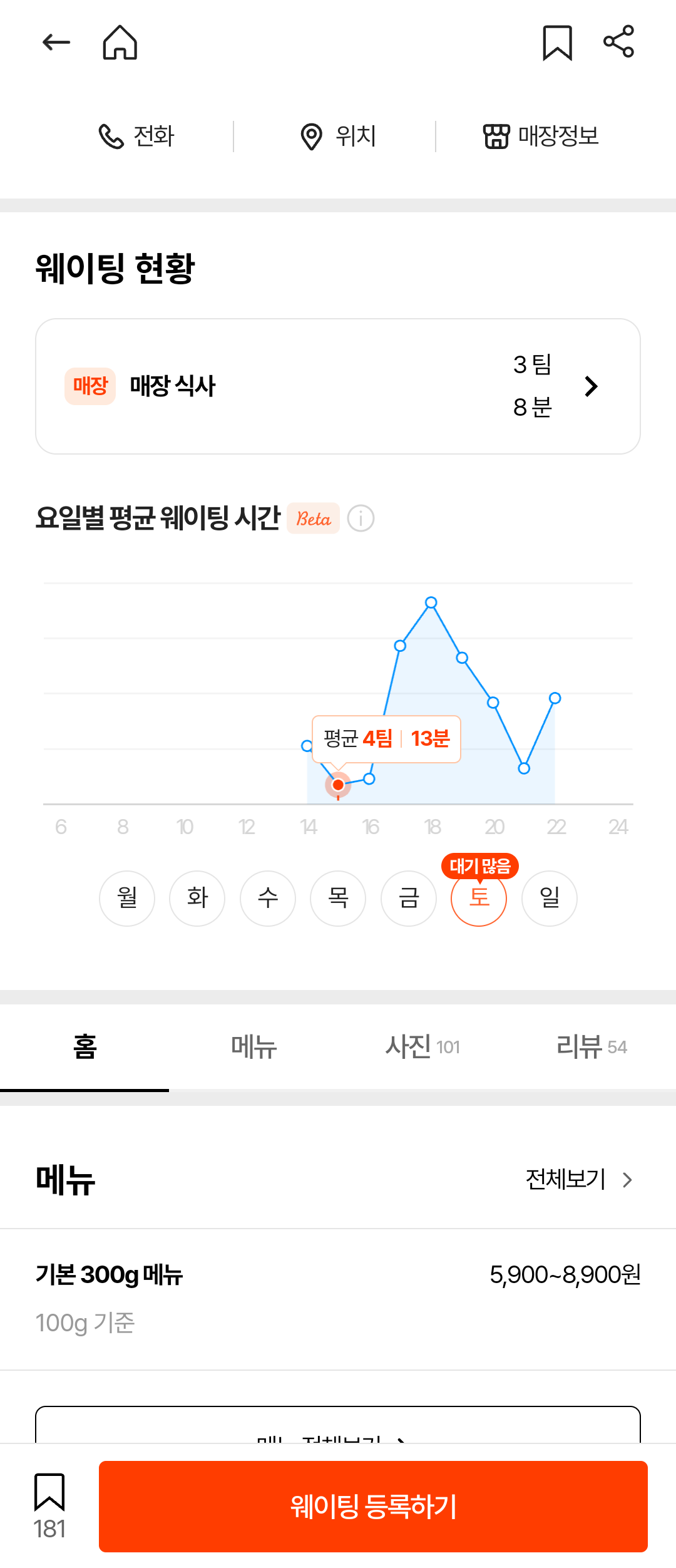 토요일 4시 이후로 급격히 웨이팅이 늘어남을 확인하고