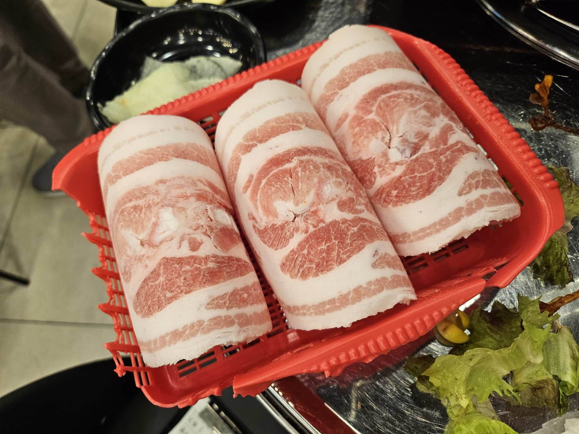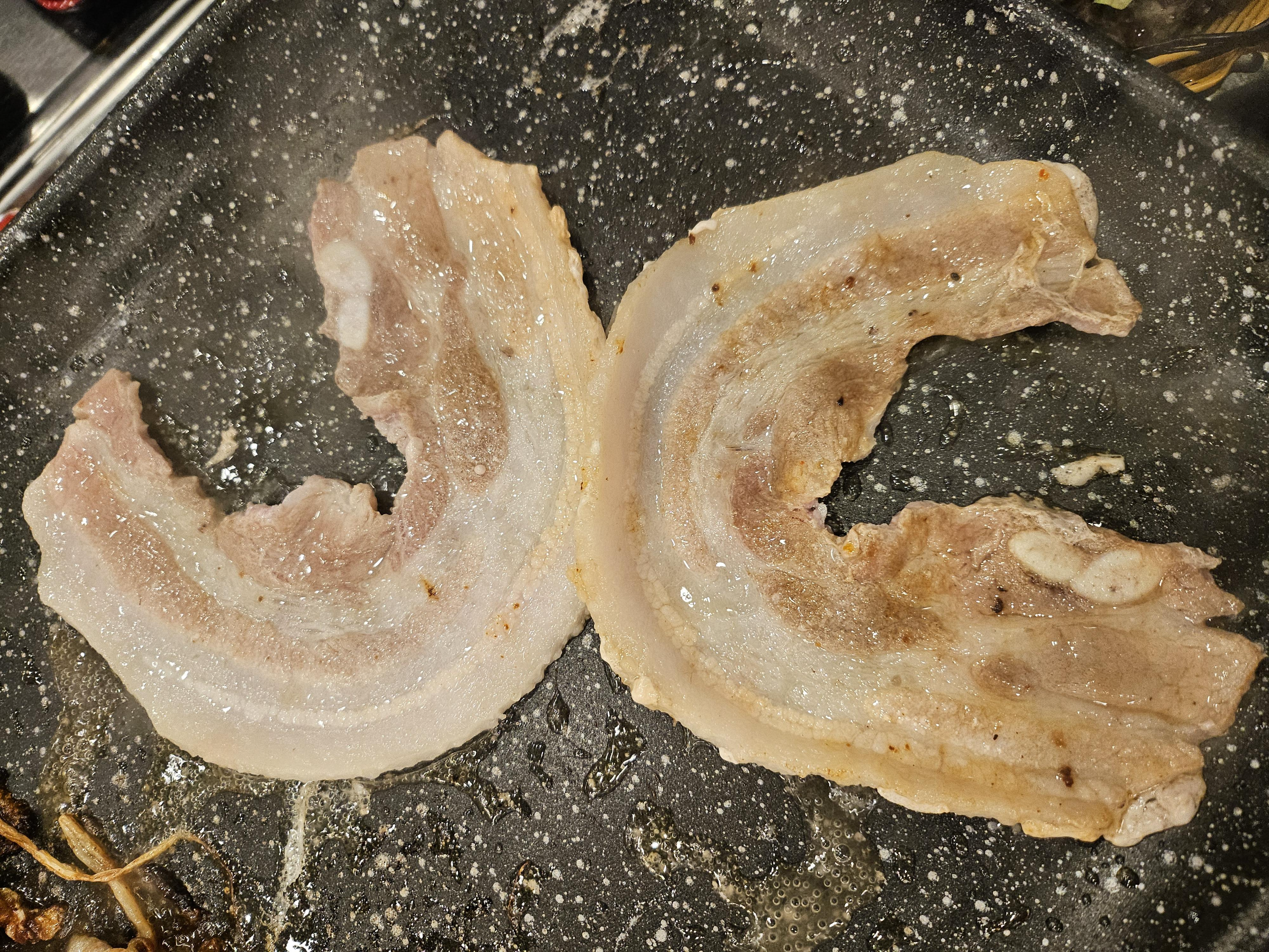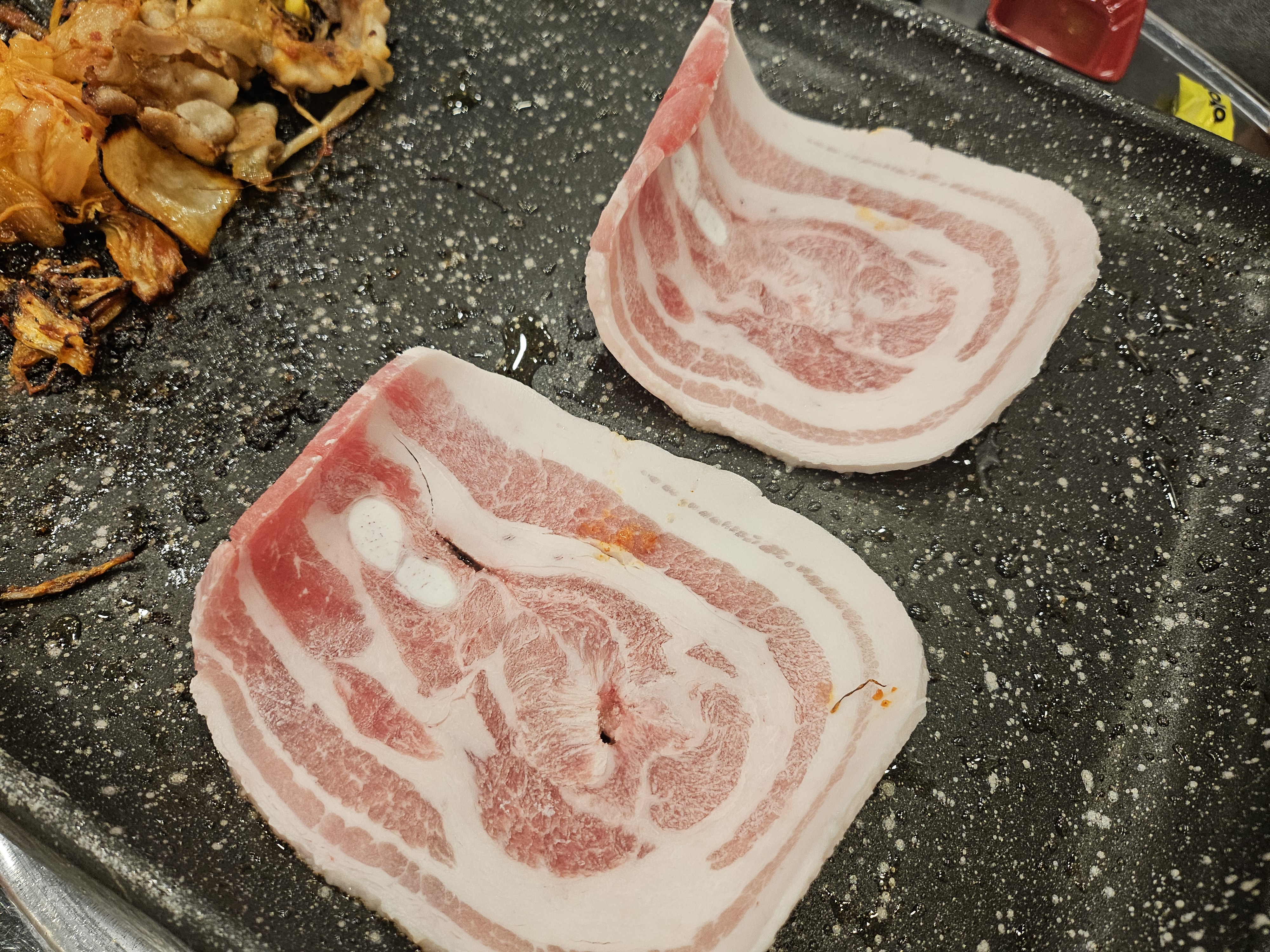 불판에 올리면 말려있던 고기가 조금 펴지고