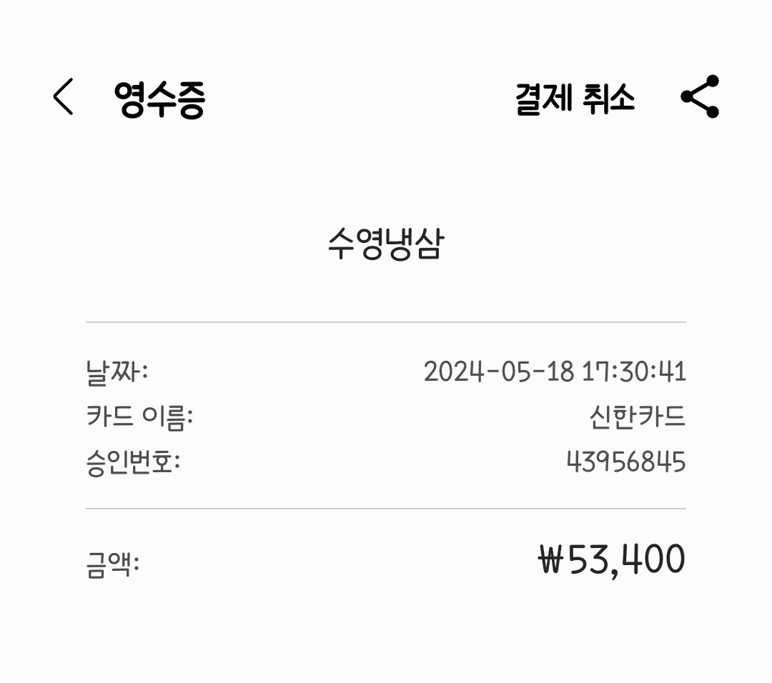 그리고 생각보다 저렴한 금액을 결제했다