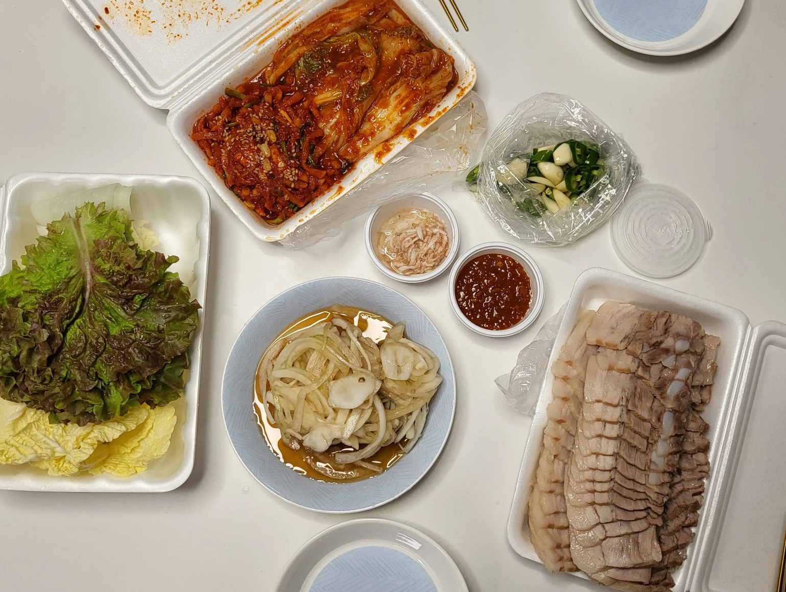 수육이 담긴 포장에서 기름이 약간 새는 듯했다