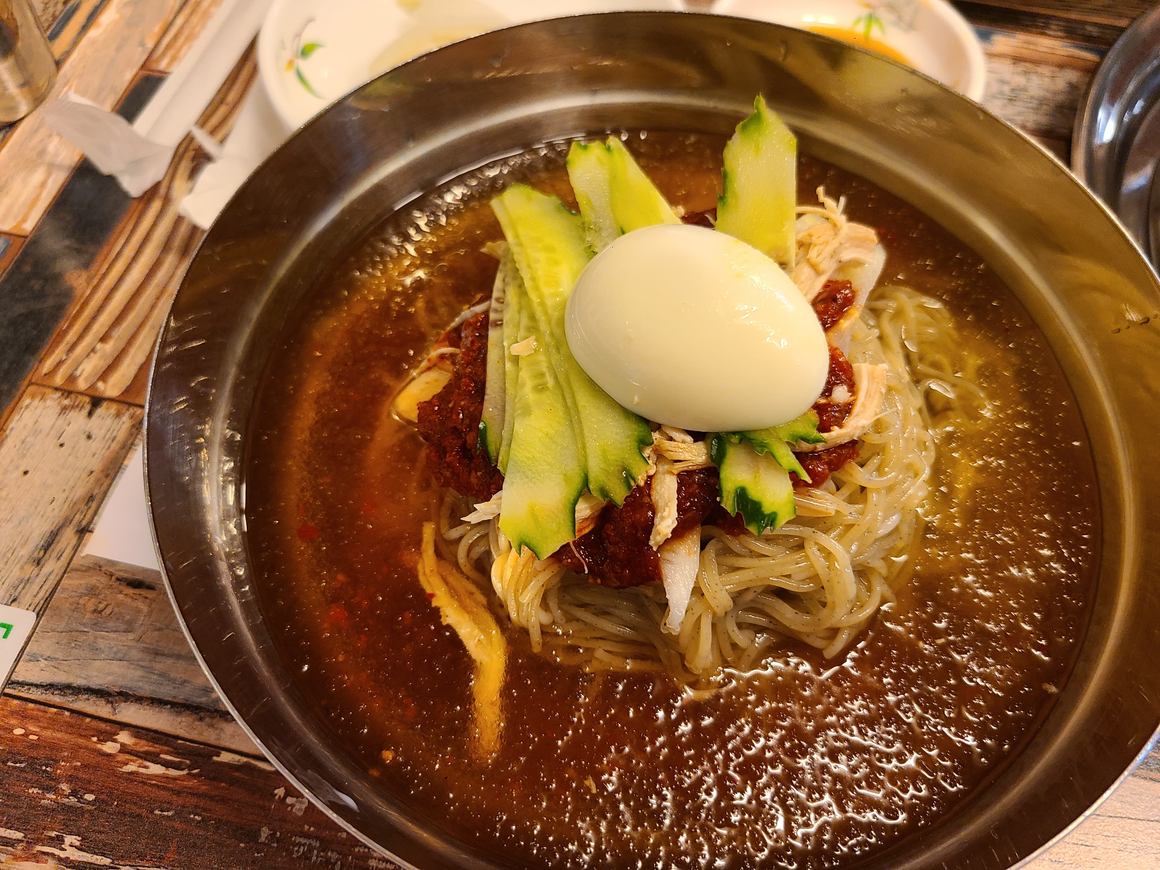 물밀면은 육수에서 한약재 맛이 강하게 났고