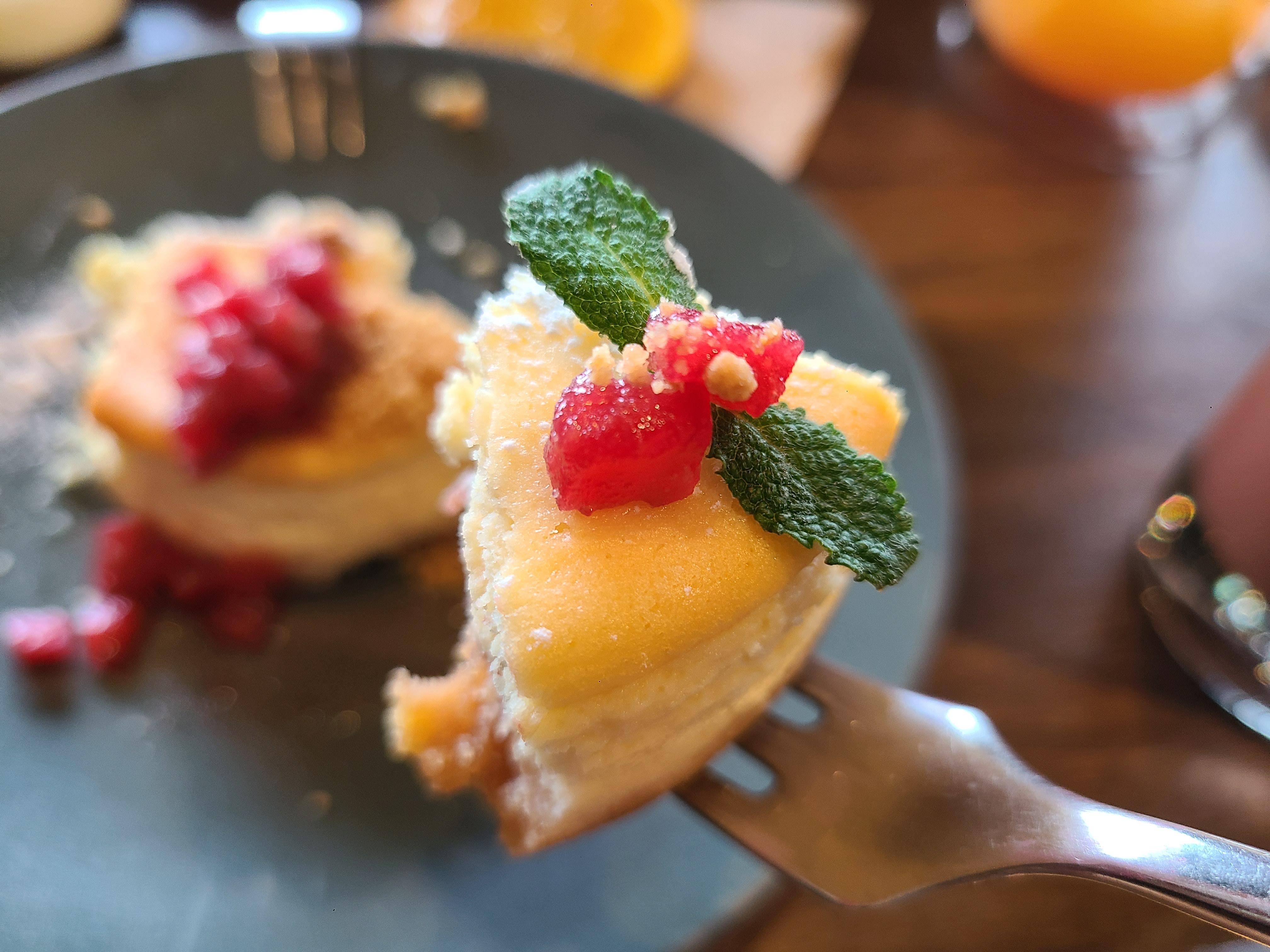 부드럽고 촉촉한 치즈케이크 위에