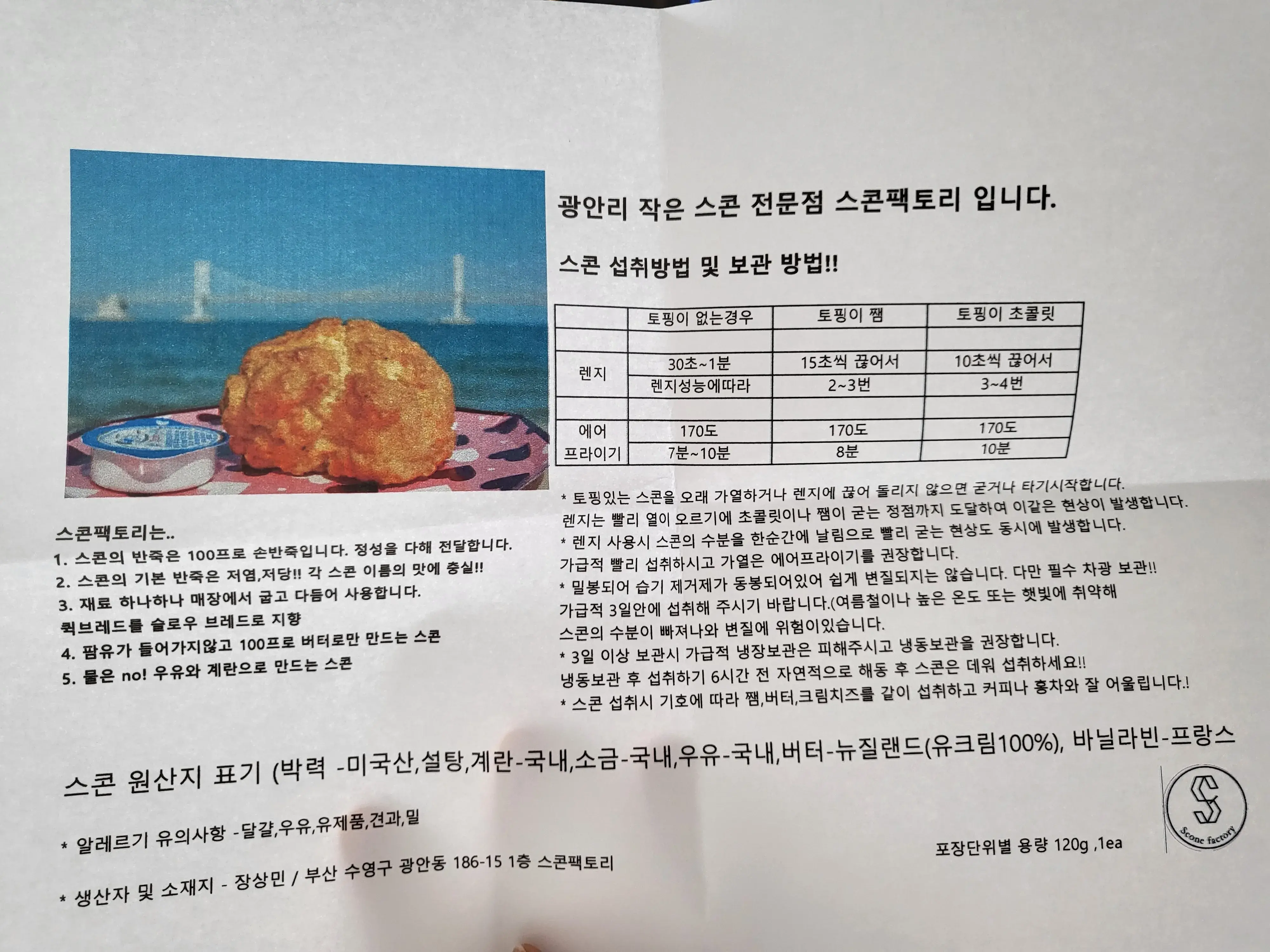 그리고 스콘 섭취방법 및 보관방법도 동봉돼있다