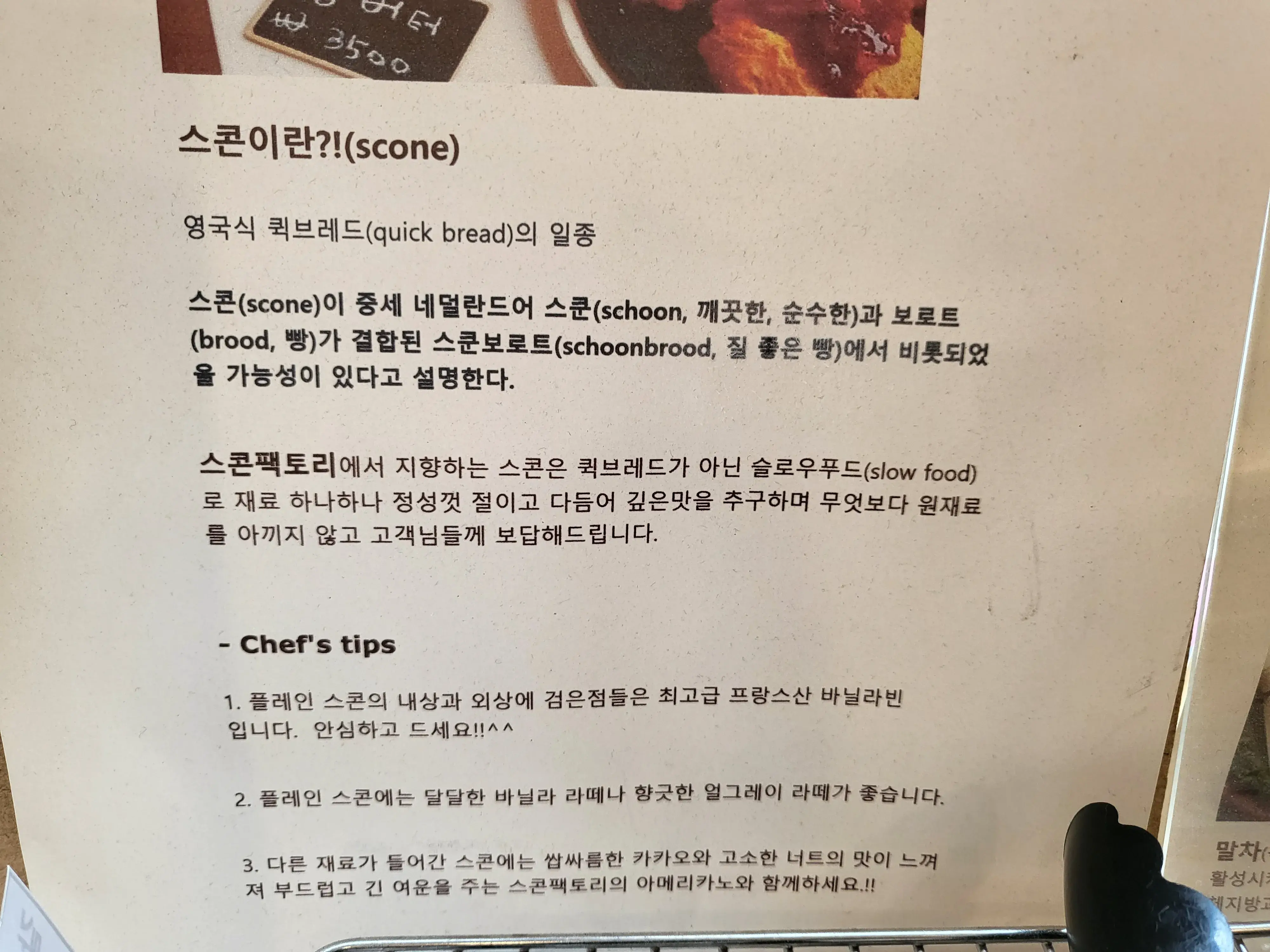 그리고 벽면에는 스콘의 정의에 대해 설명되어있다