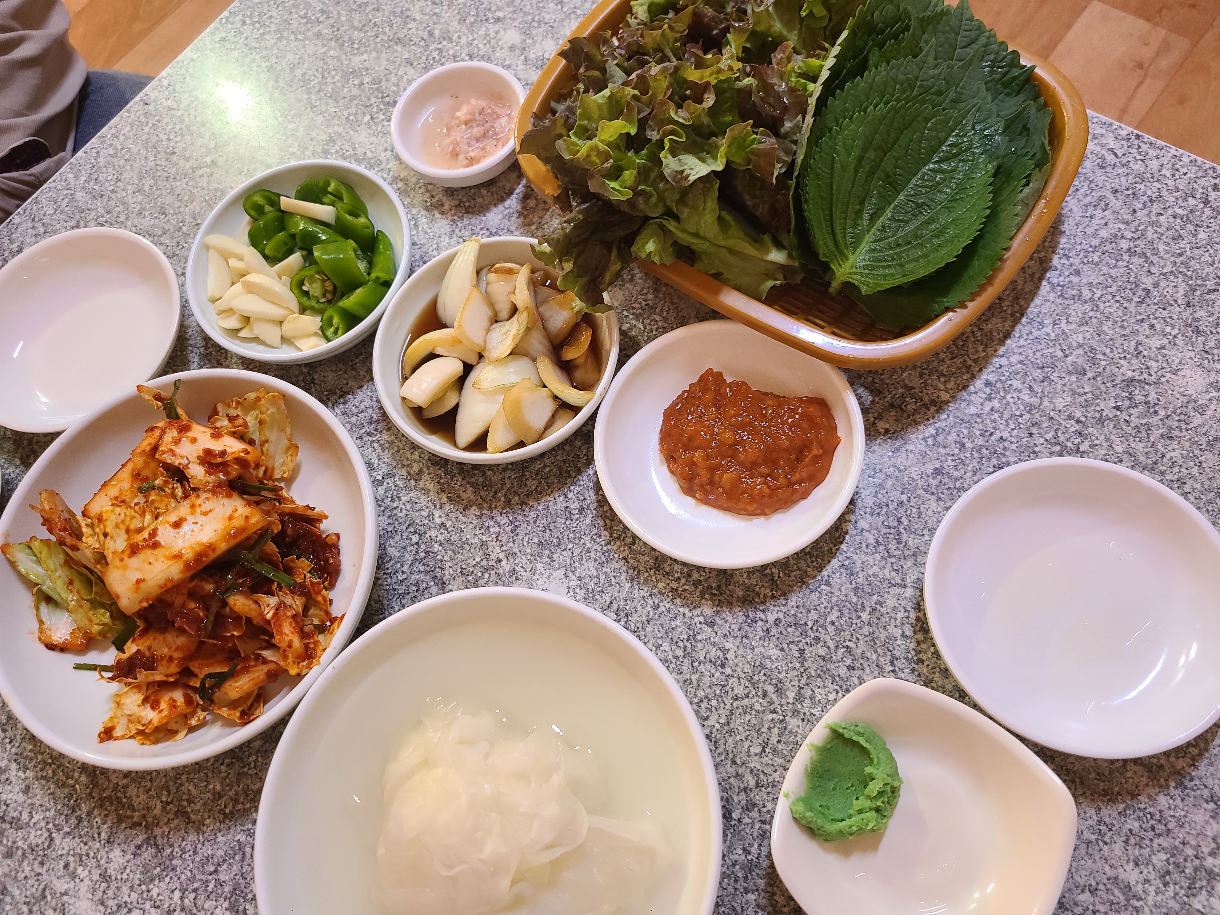 먼저 밑반찬이 세팅되었다