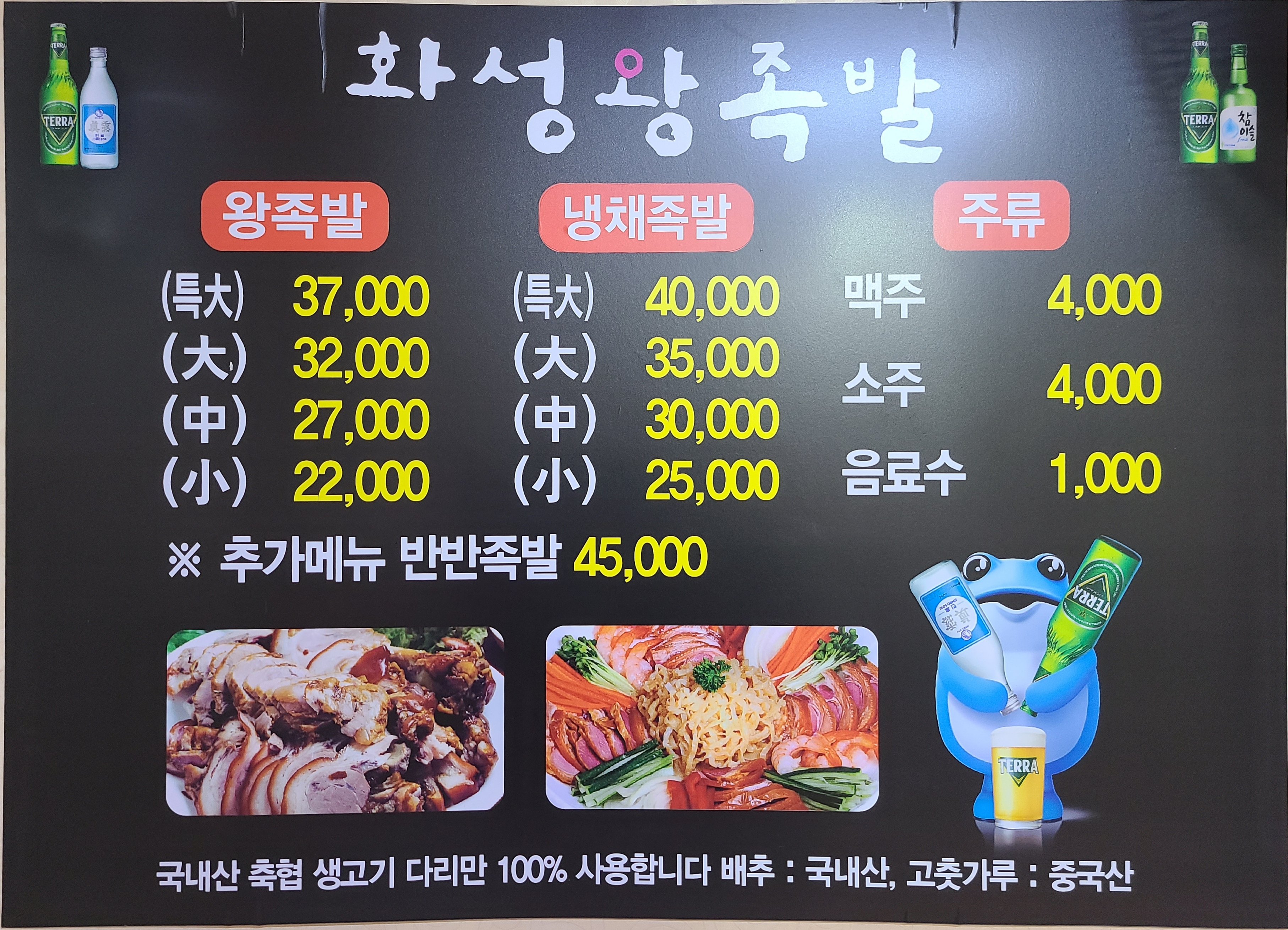 메뉴는 왕족발과 냉채족발로 구성되어 있다