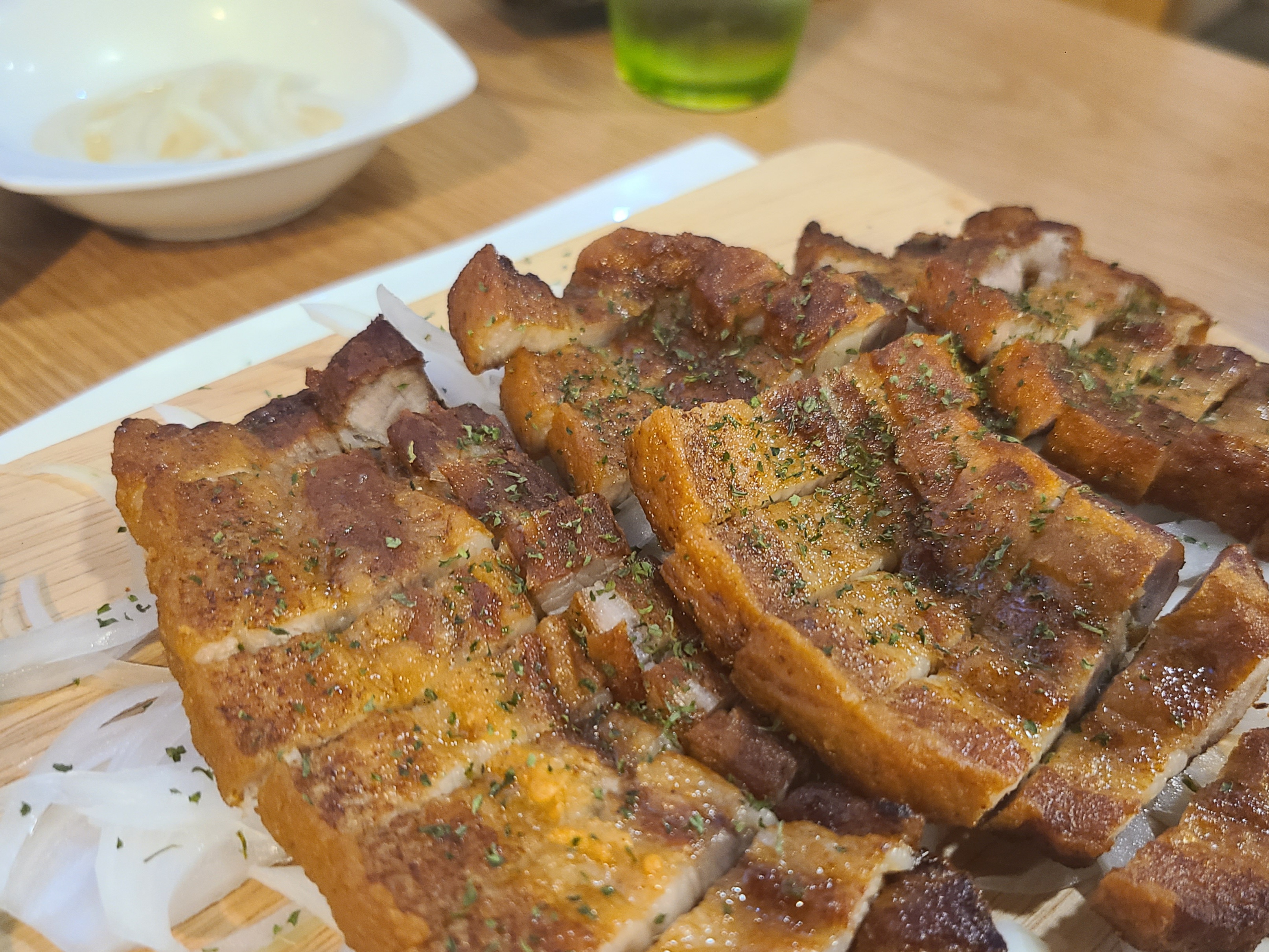 삼겹살이 아주 노릇노릇하게 잘 튀겨졌다