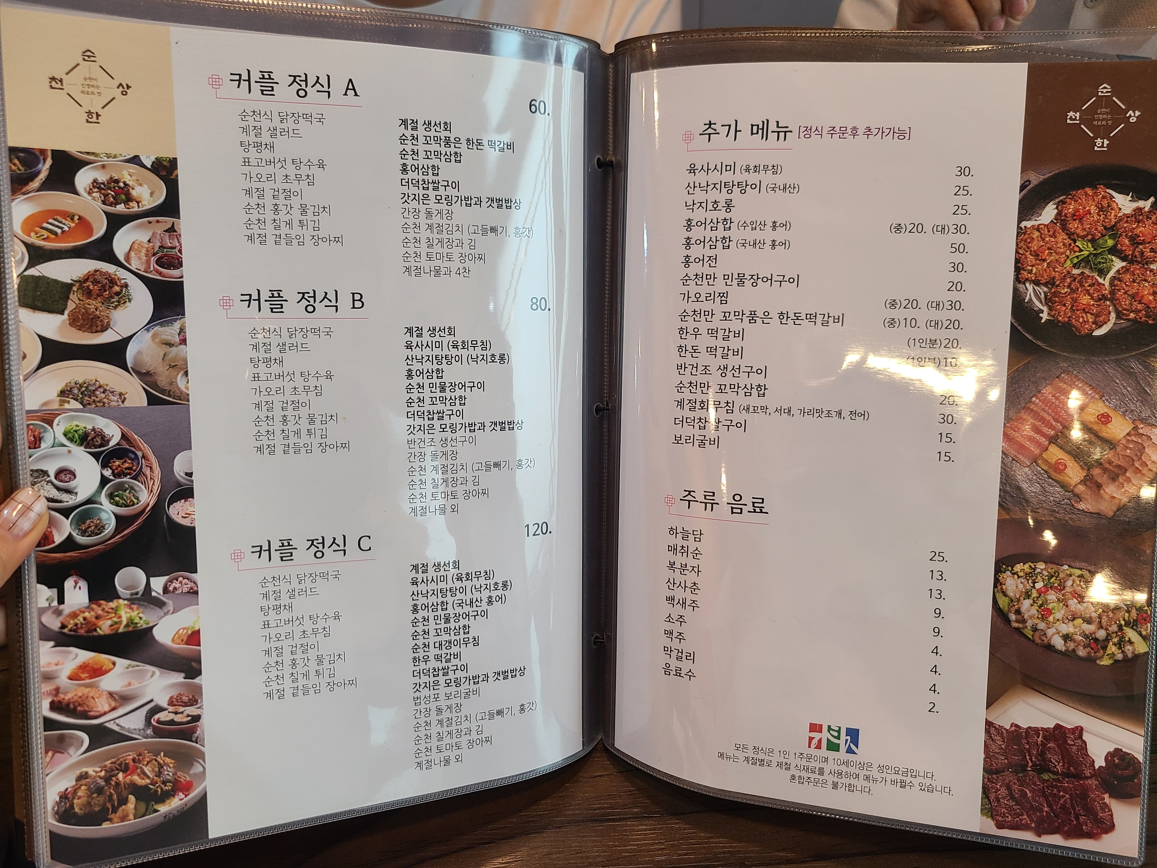 메뉴판에는 가격대별로 다양한 정식 메뉴가 있다