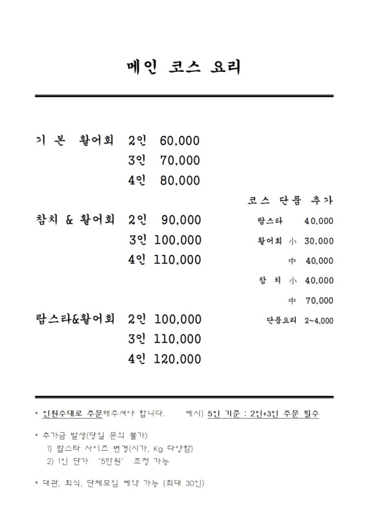 우리가 선택한 코스는 '랍스터&활어회' 2인 코스