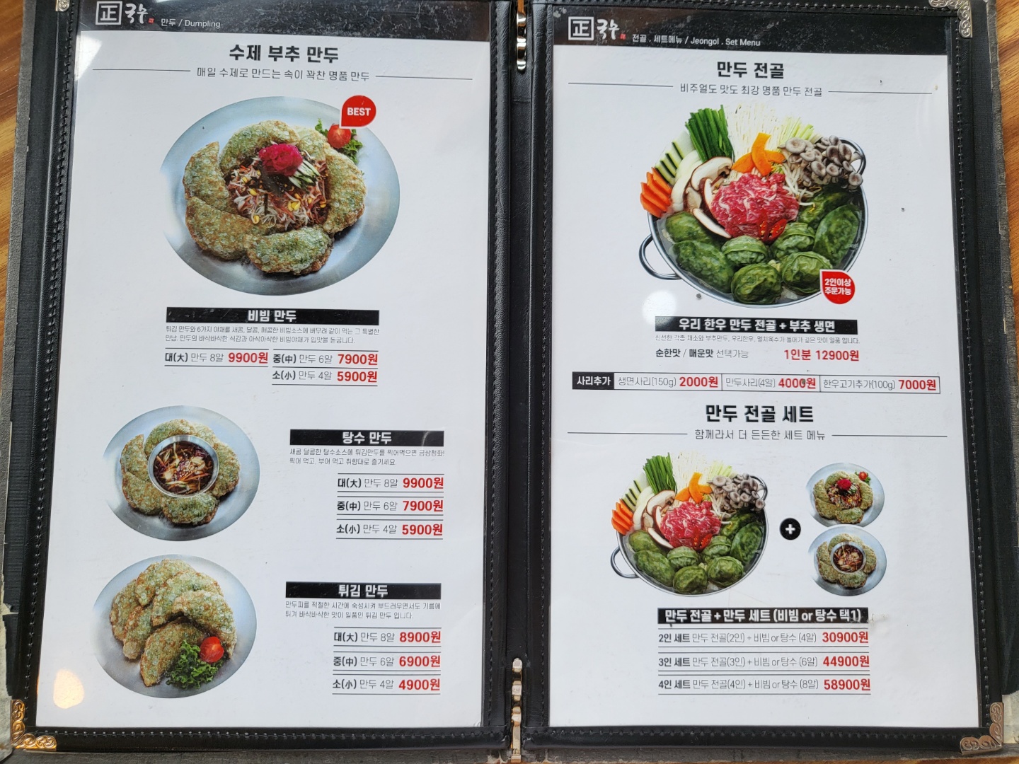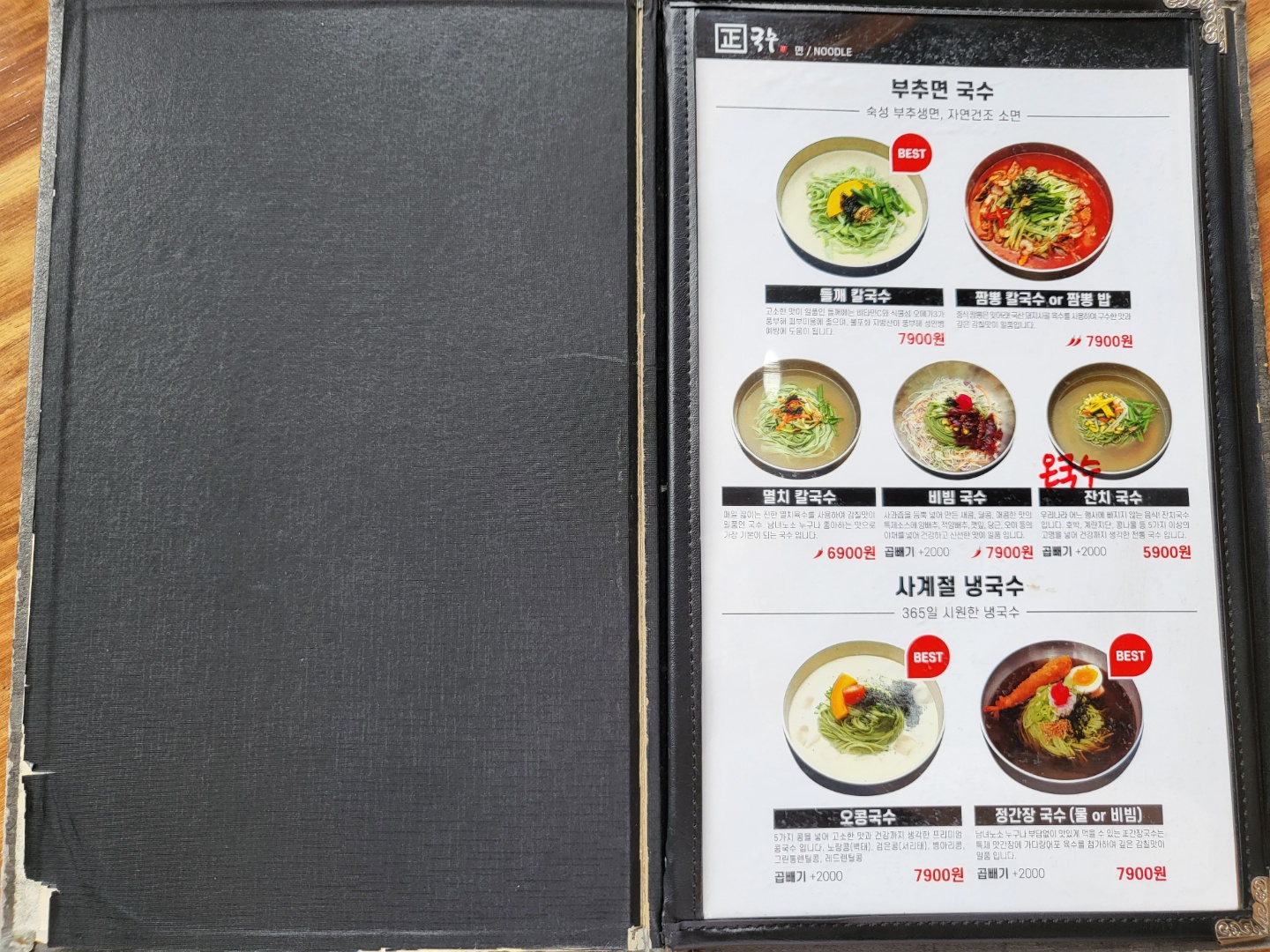 메인인 국수와 만두를 이용한 다양한 메뉴들