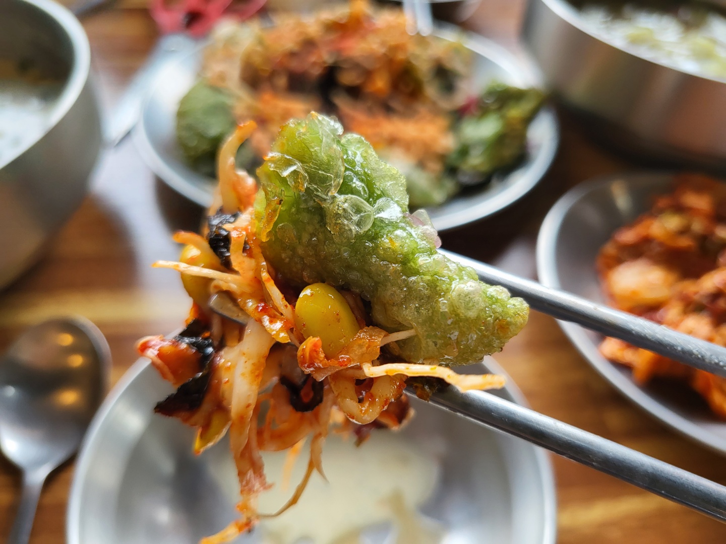 ★포항 죽도 맛집 '정국수' 초록색 부추국수, 비빔만두