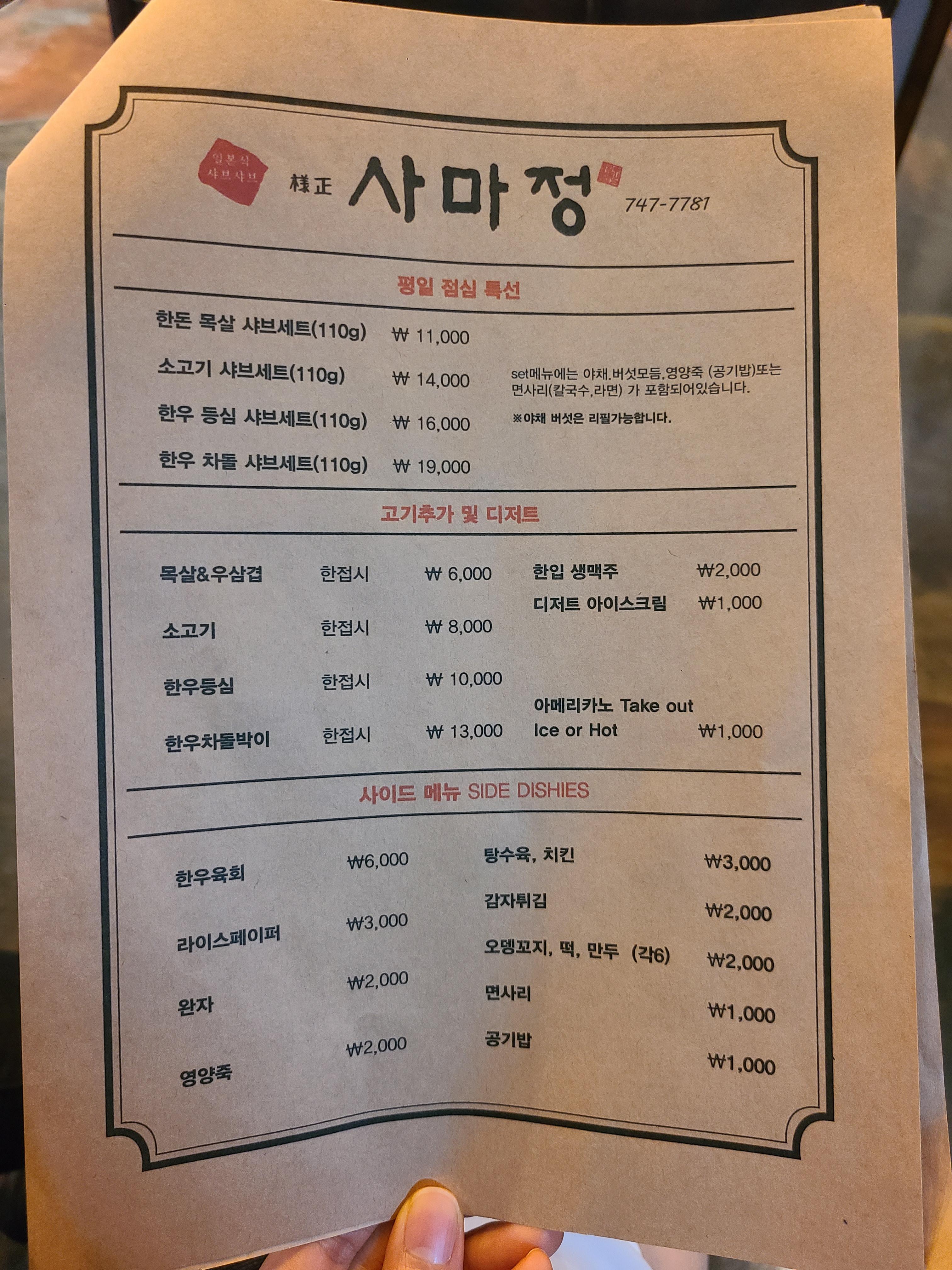 사마정의 칼국수와 죽은 메인 샤브샤브만큼 맛있다