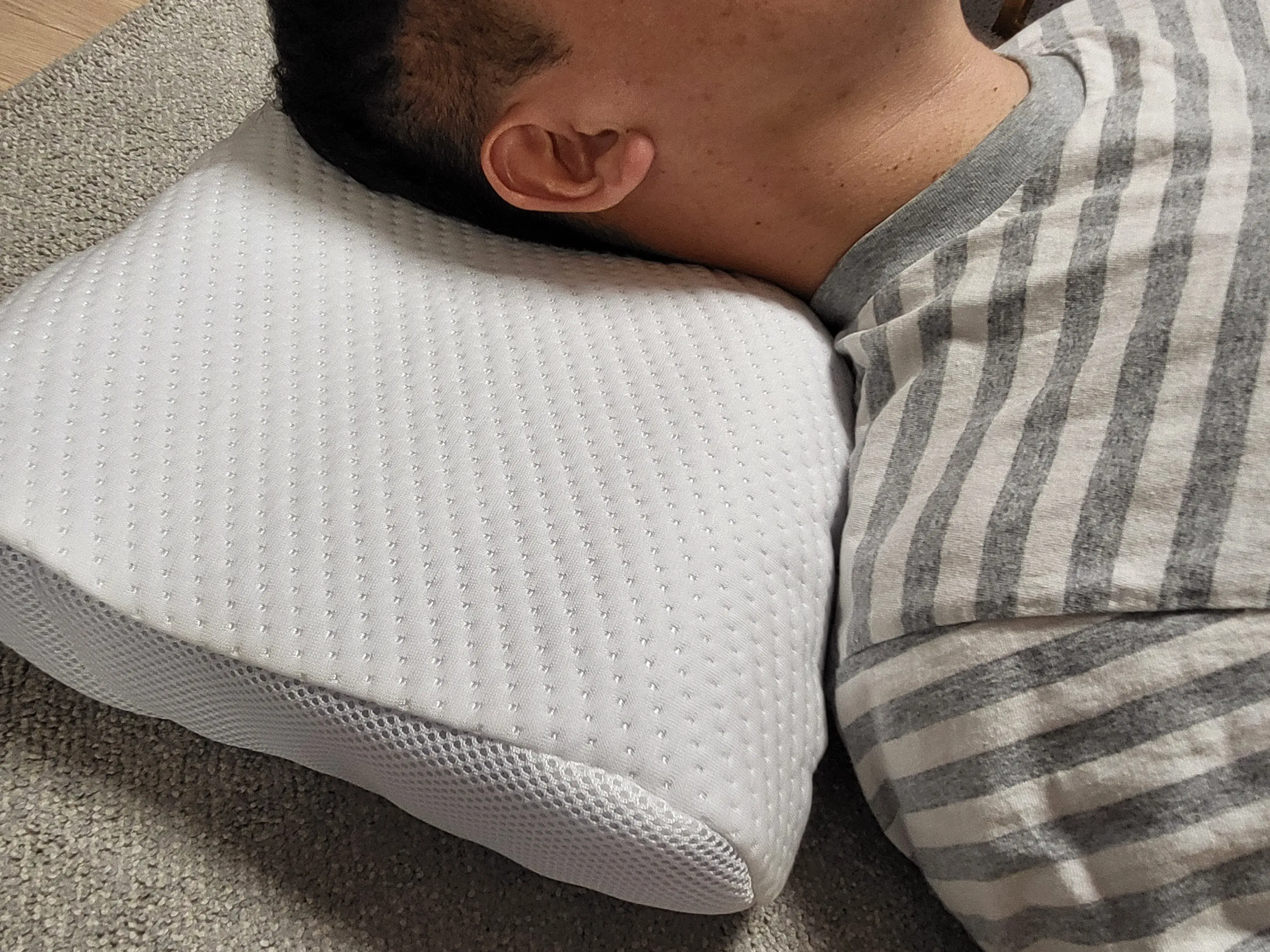 얼핏 보기에는 일반 메모리폼 베개와 큰 차이점이 없다