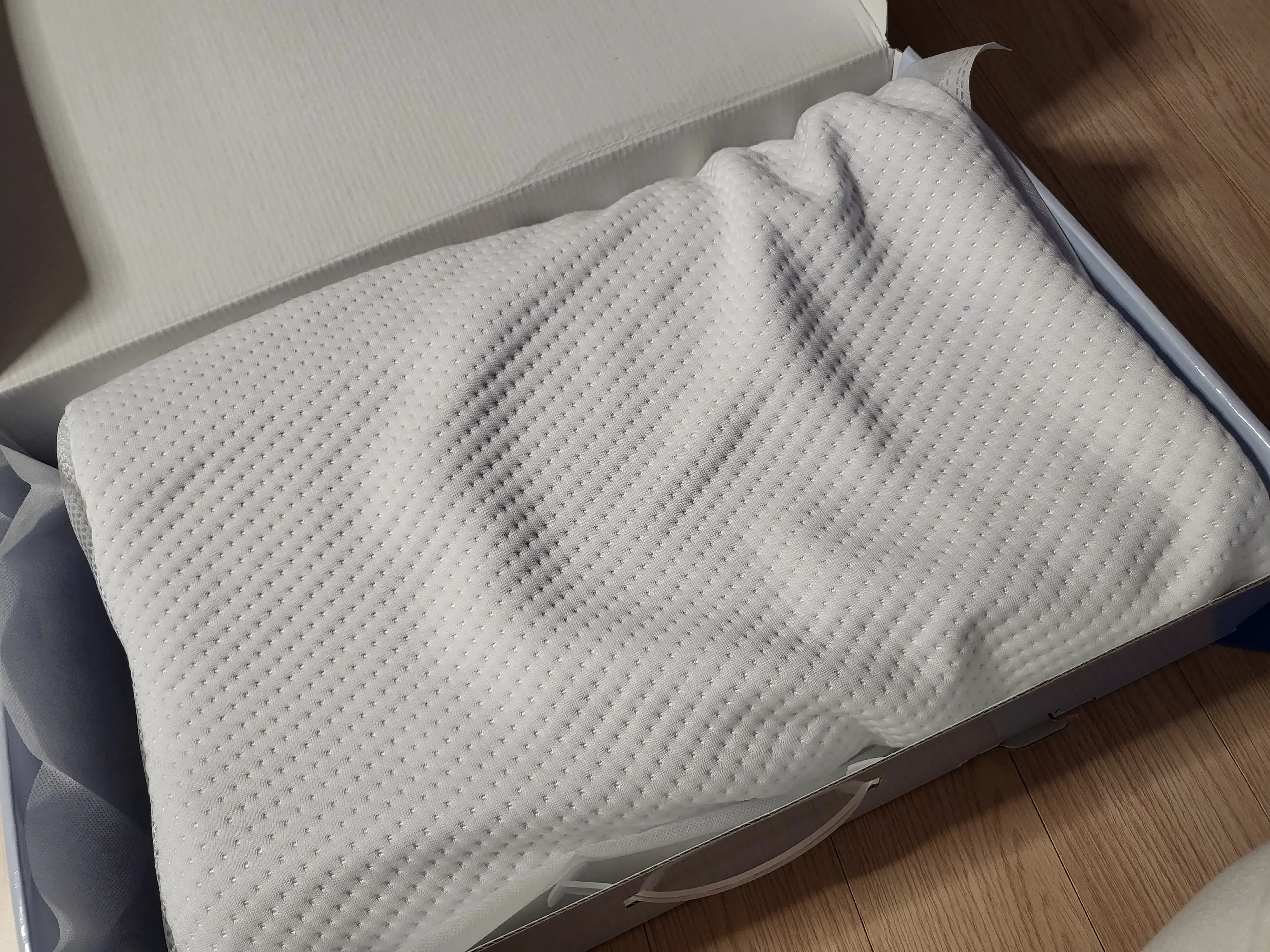 베개에는 커버가 써진 채로 왔고 무게가 제법 무거웠다