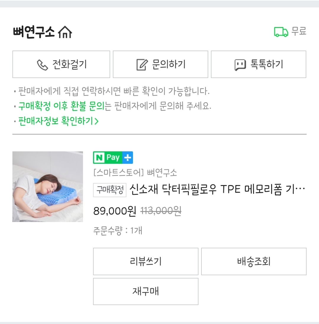 주문한 지 하우만에 도착한 베개
