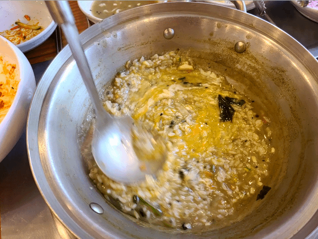 전복 내장의 맛이 느껴지는 진한 국물이었다