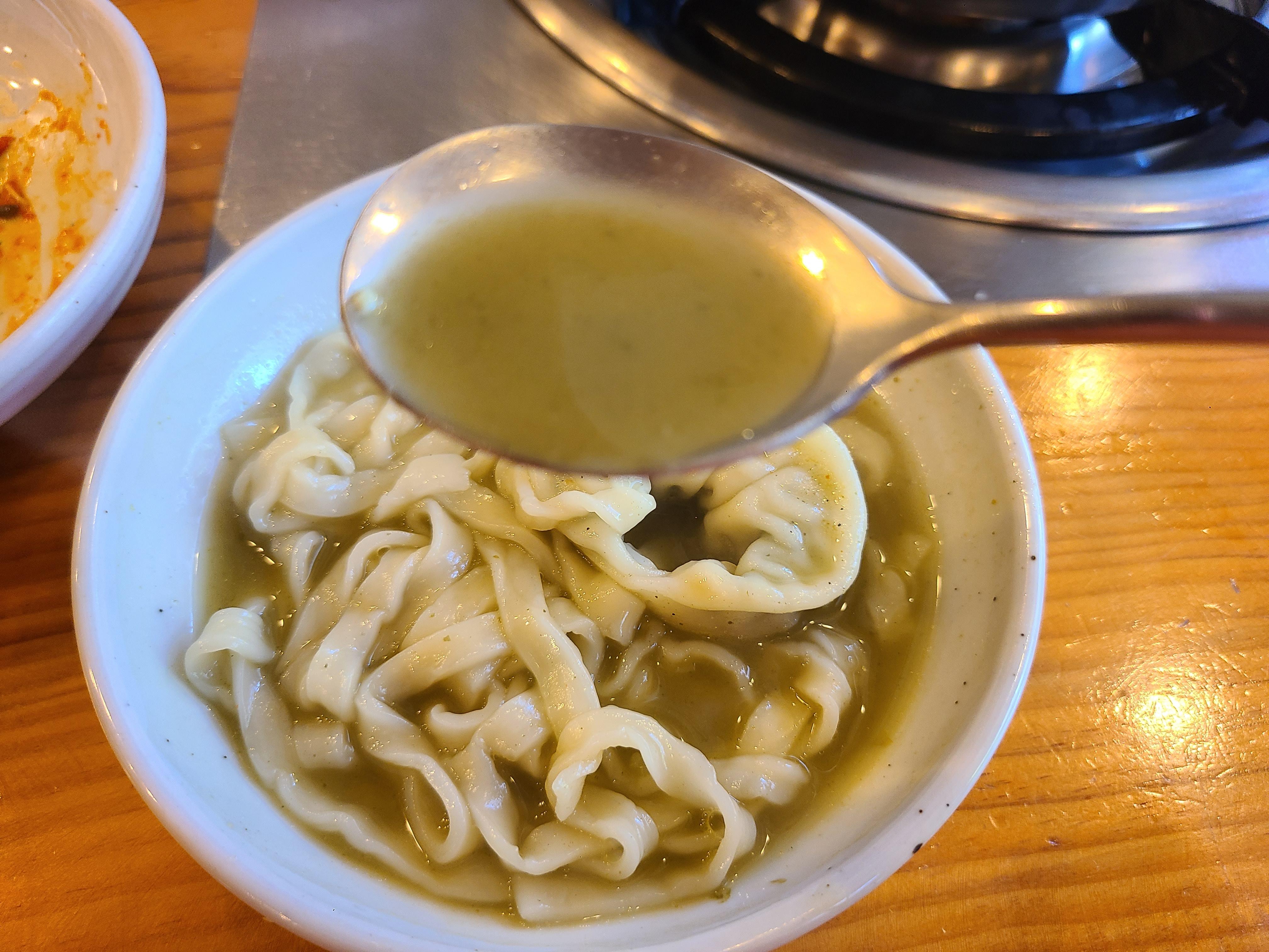 국물 색깔은 약간 탁한 녹색을 뛰고 있다