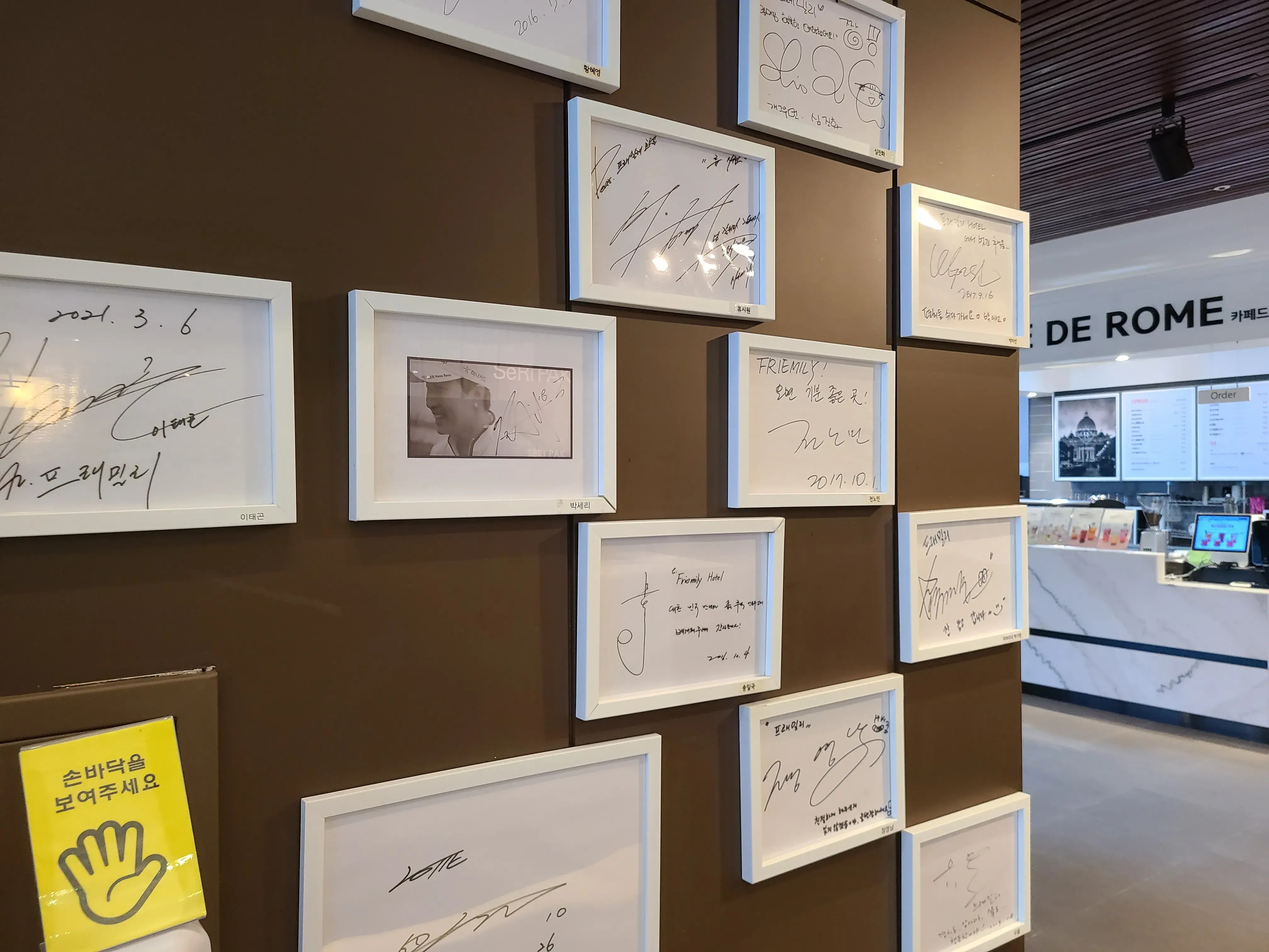한쪽 벽면에는 유명인들의 사인이 걸려있다