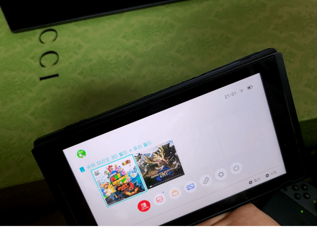 "슈퍼마리오 3D 퓨리 월드"게임칩을 넣어본다
