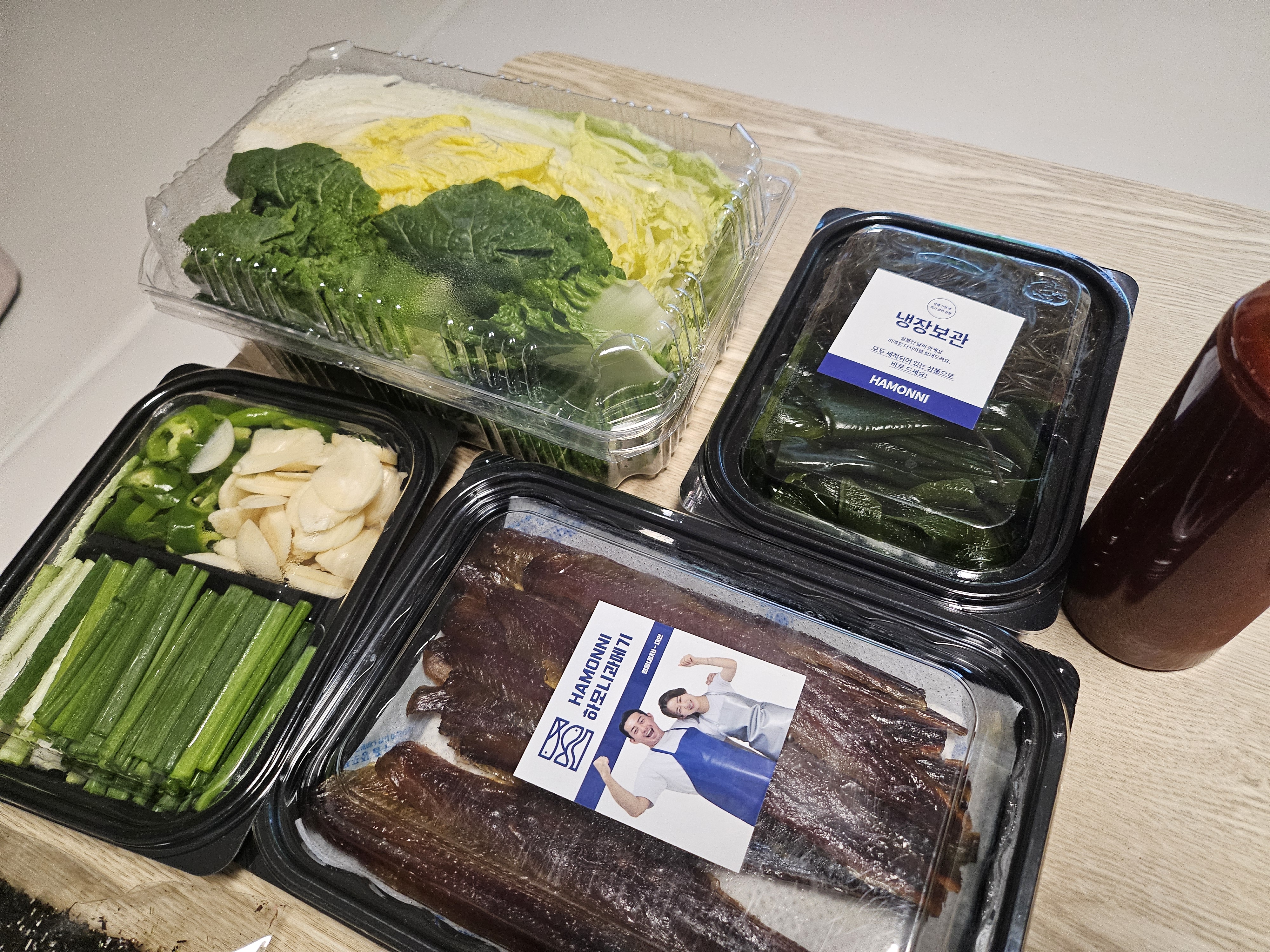 과메기, 배추쌈, 쪽파, 다시마, 해초,
