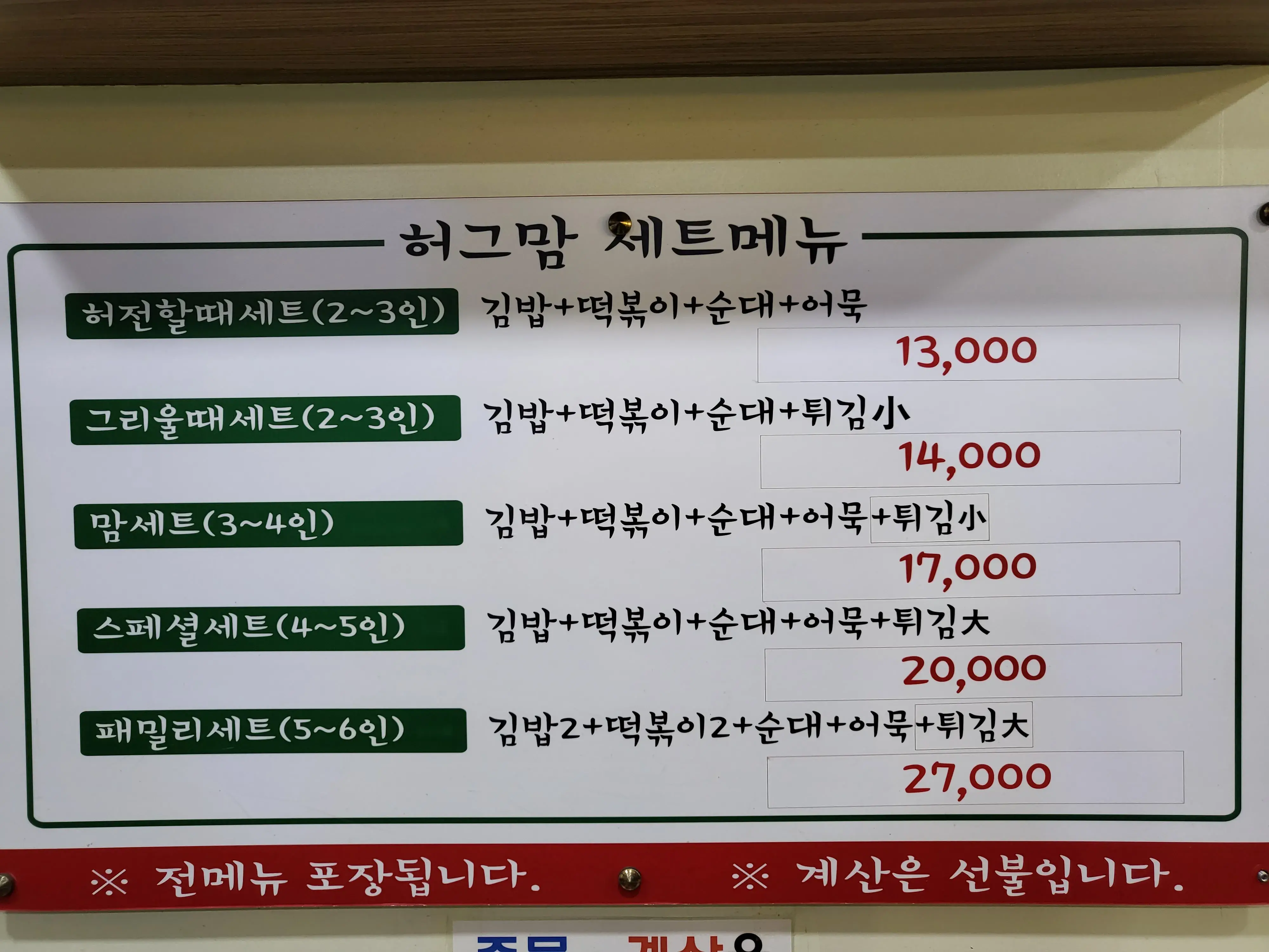 떡볶이 순대 튀김 그리고 김밥까지