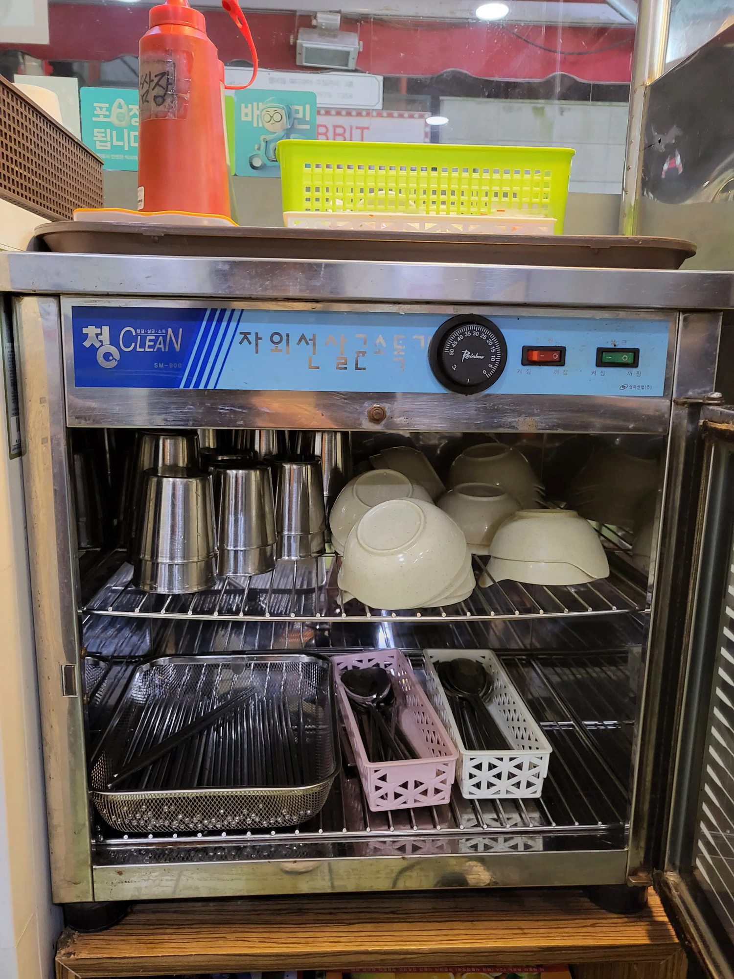계산을 하고 식기류는 셀프로 챙겨야 한다