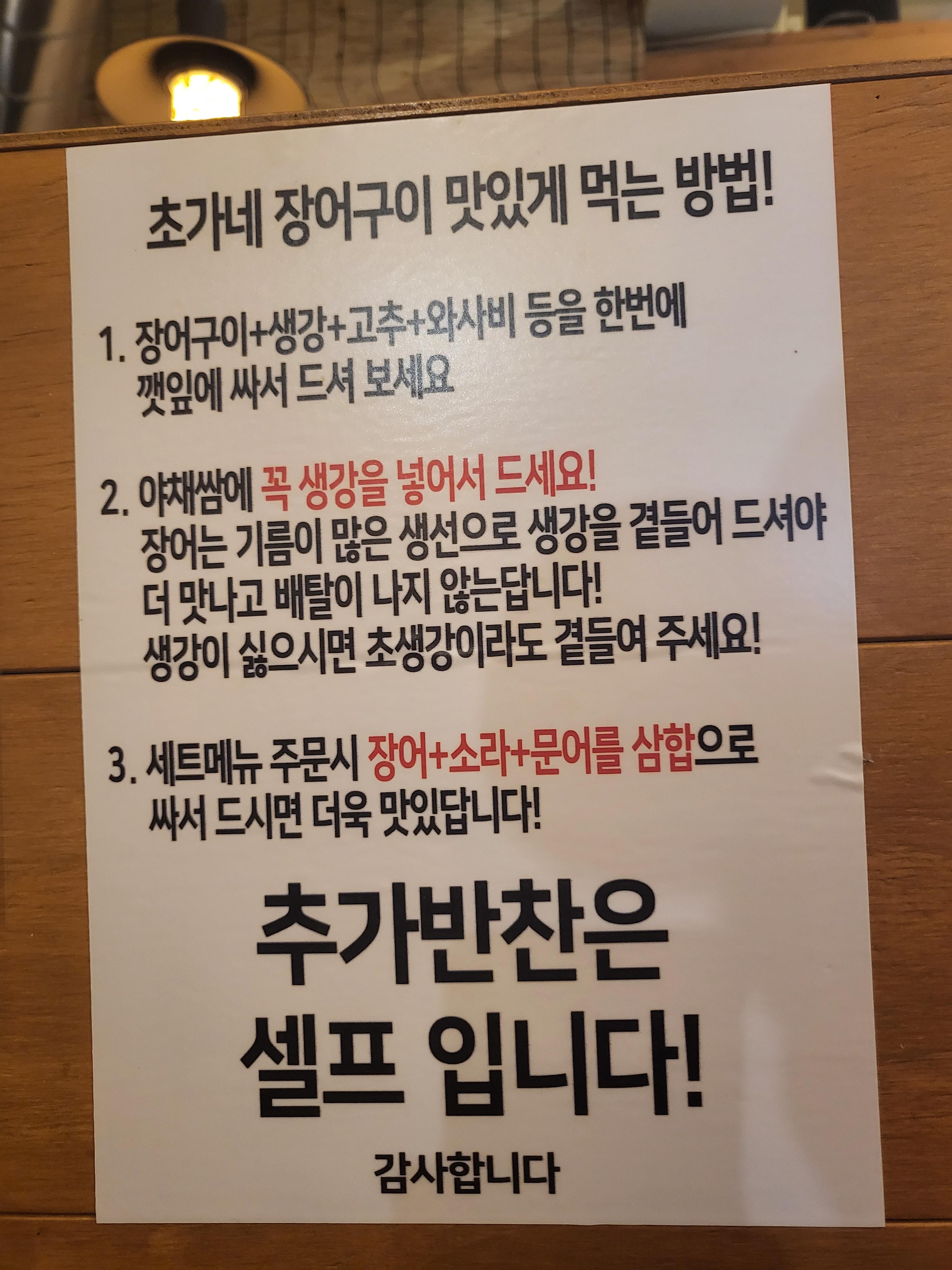 벽면에는 장어구이를 맛있게 먹는 방법이 있고