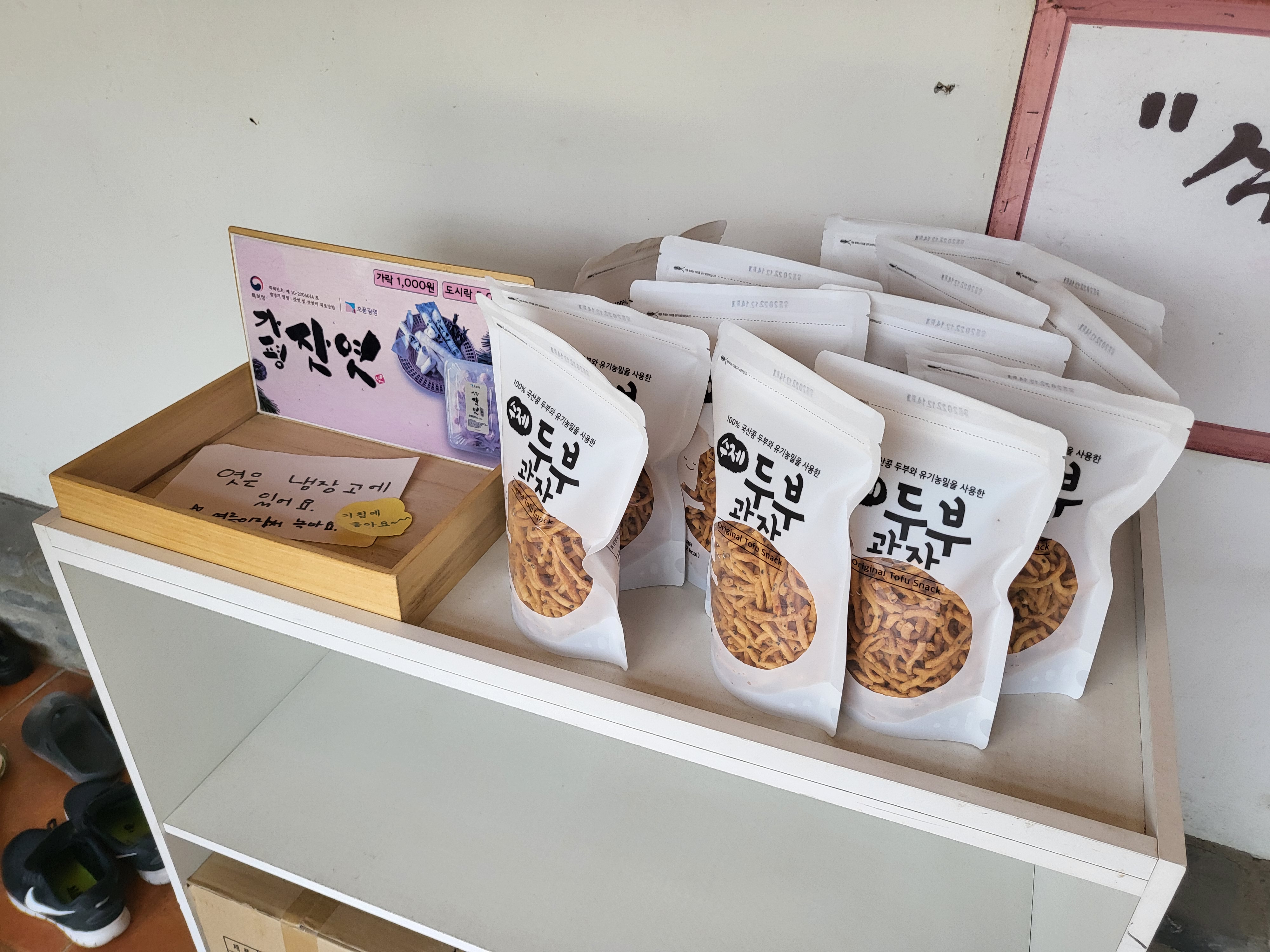 두부집이라서 수제 두부과자를 판매 중이다