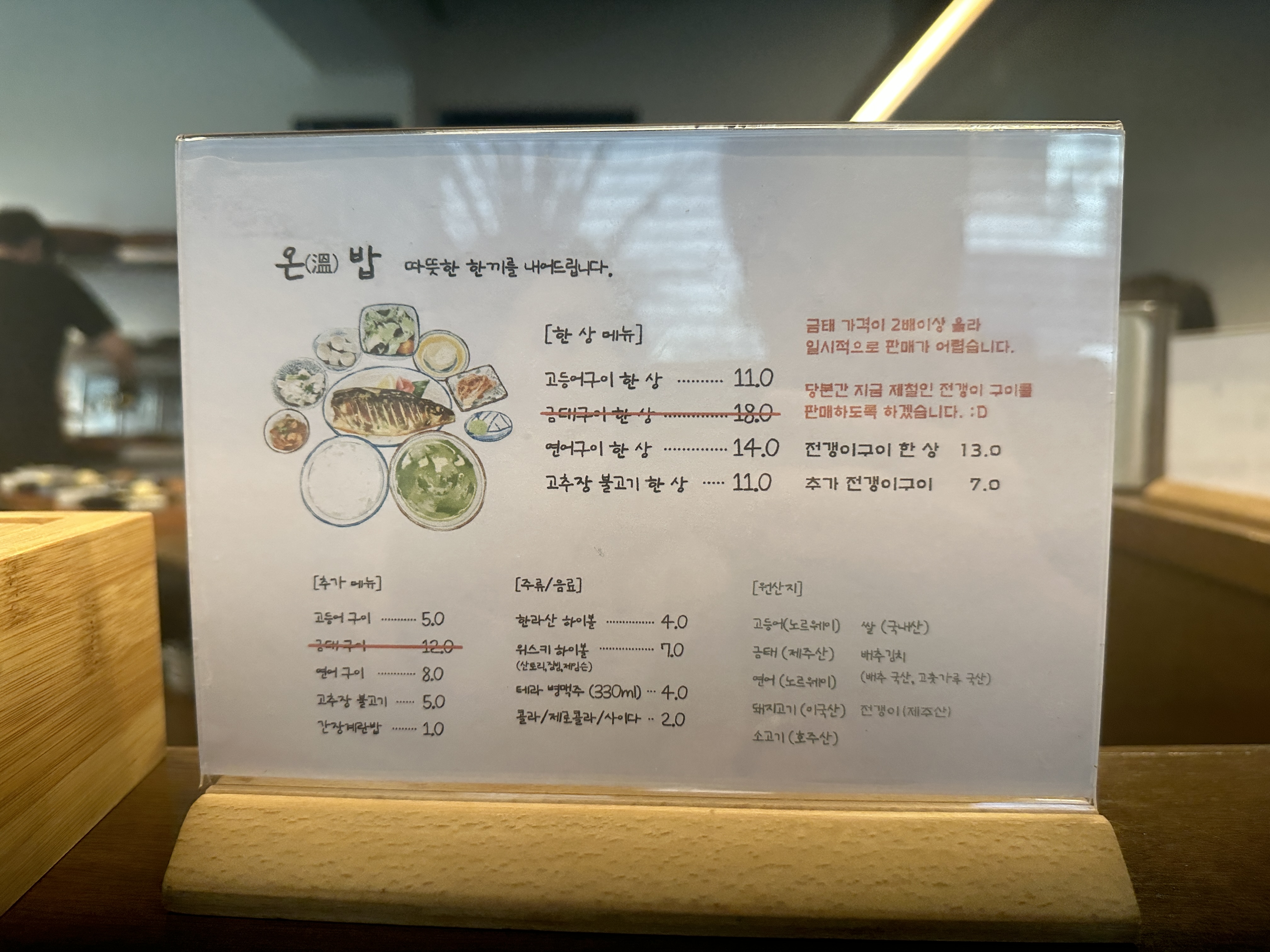 대표메뉴가 무려 생선구이라서 방문해 보았다