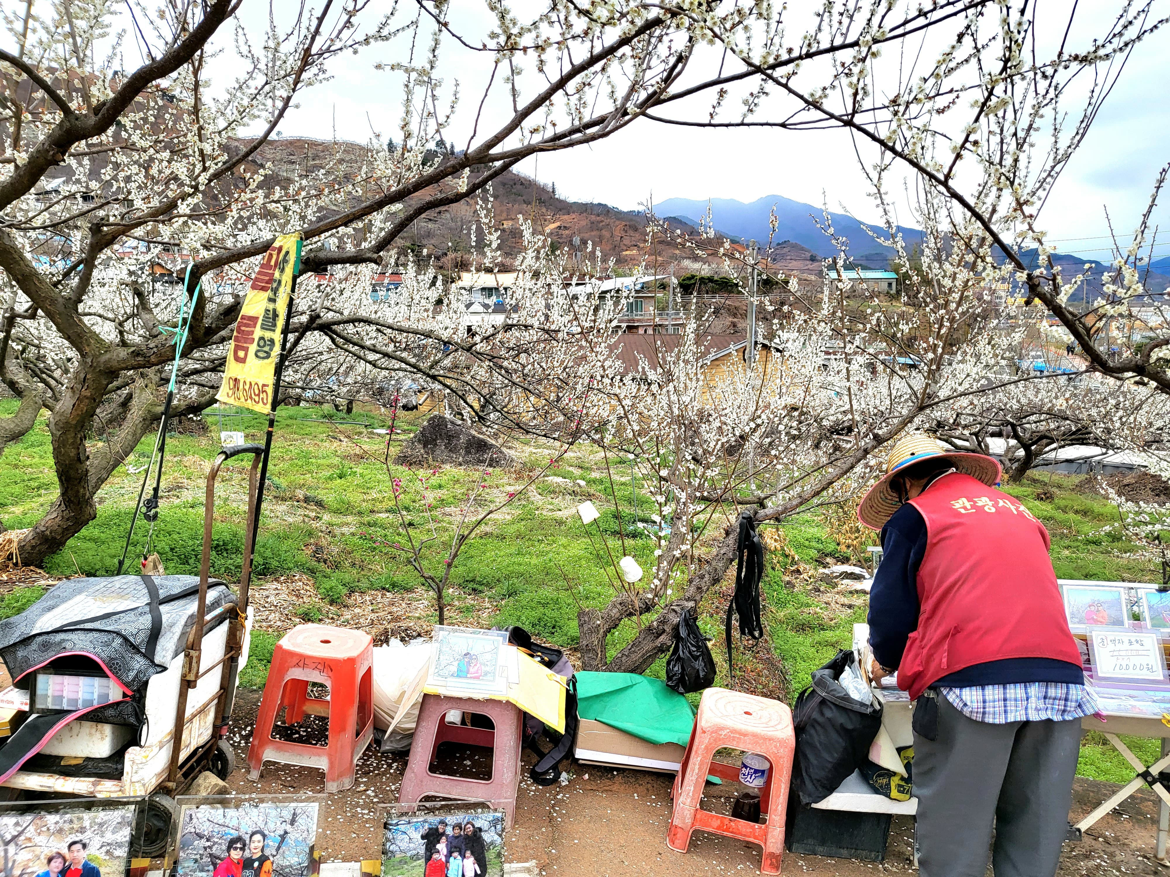 광양 매화마을에서는 즉석 사진을 찍을 수 있다