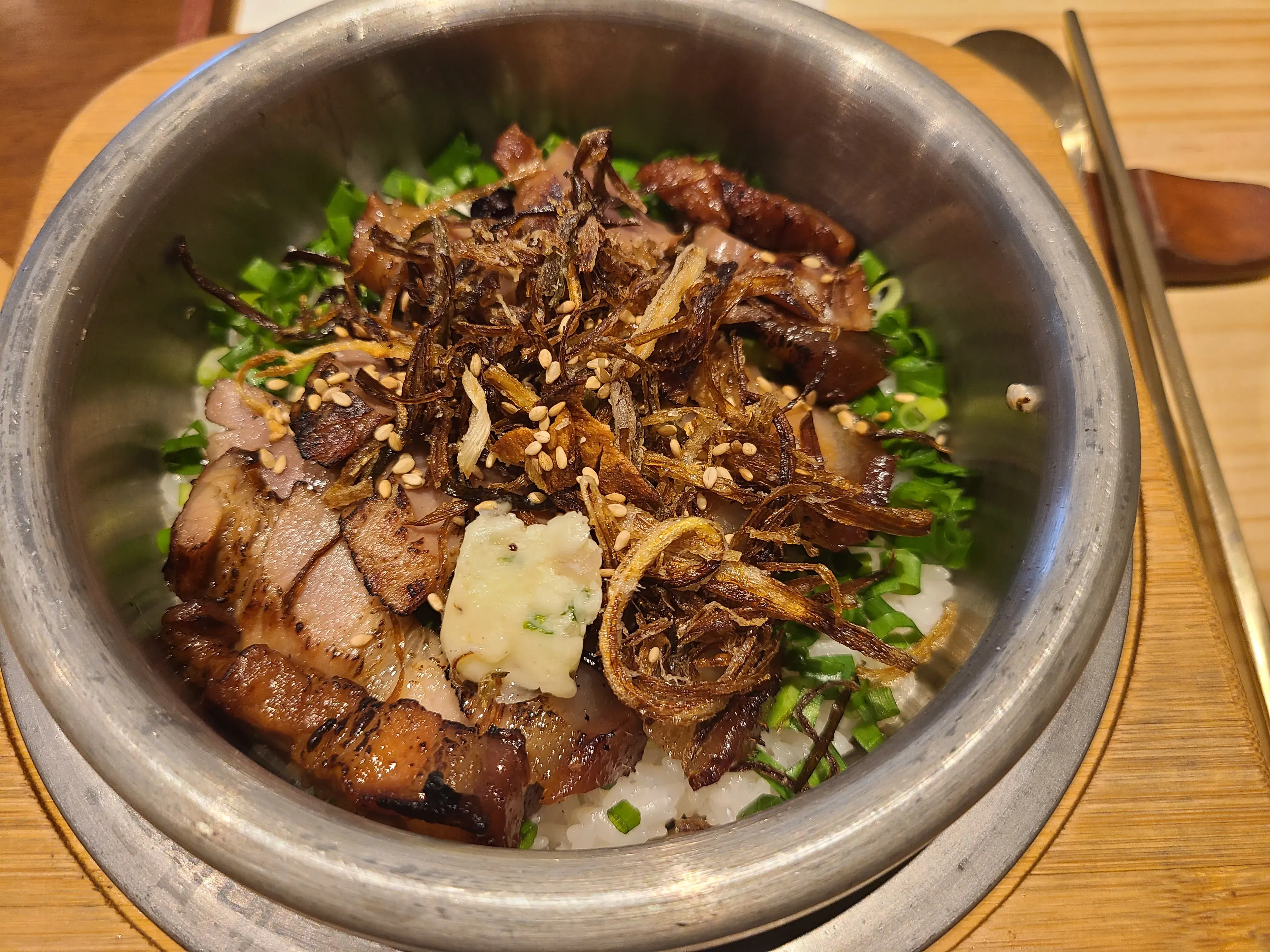 된장 오겹살 솥밥1, 와규 솥밥1, 헤이리 특제 냉소바1