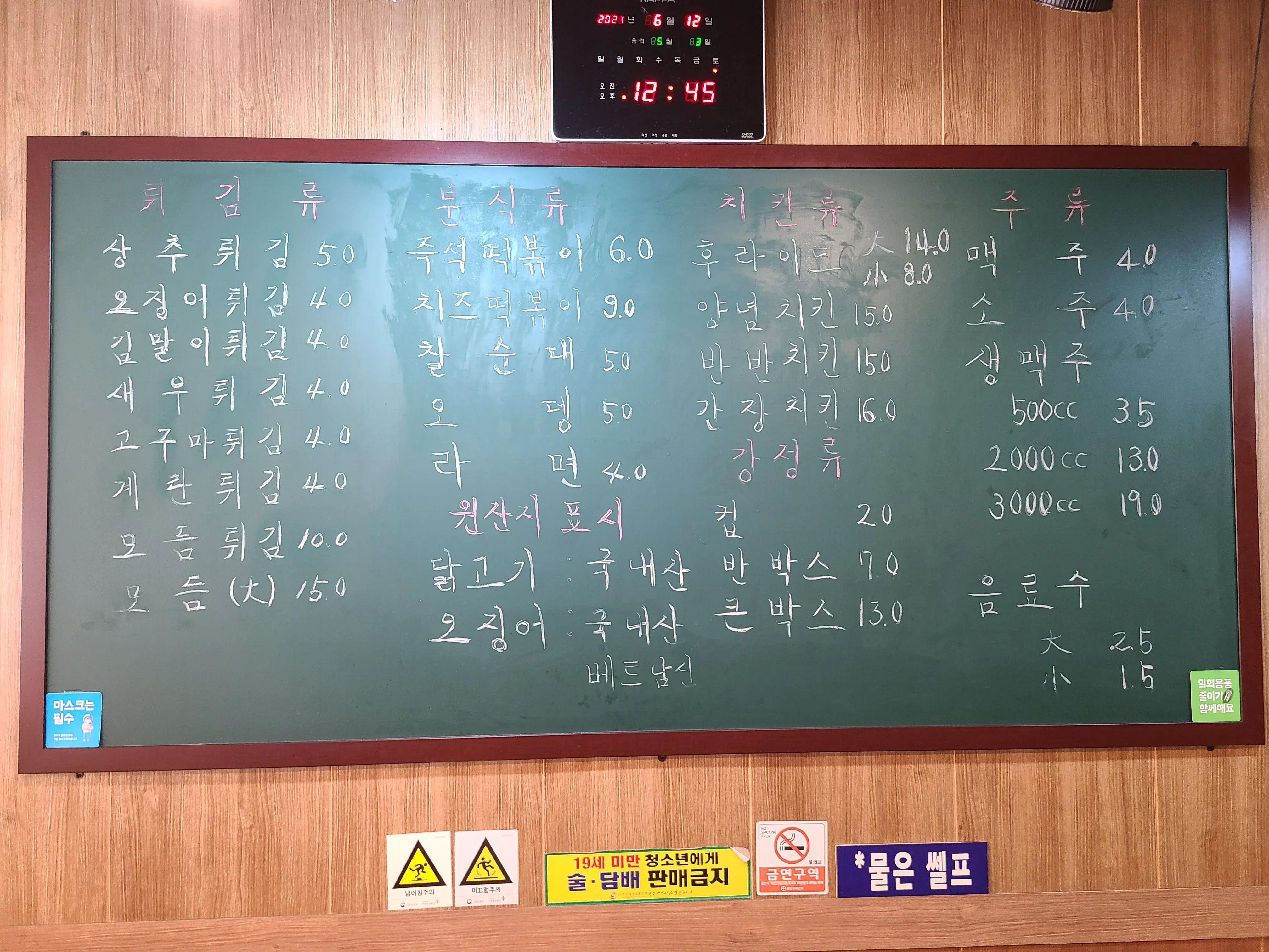 각종 튀김류가 있지만 메뉴는 정해져 있다