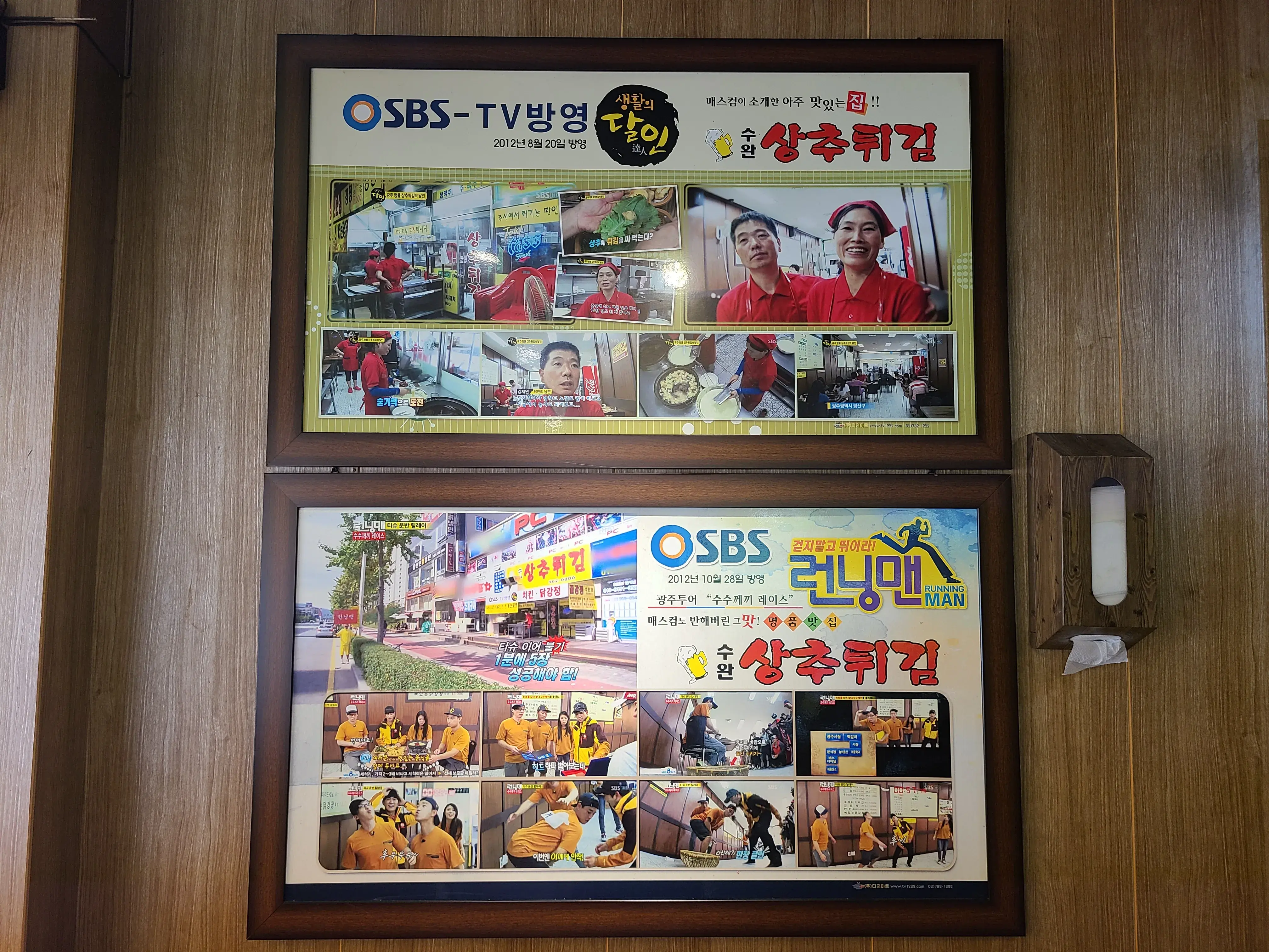 가게 벽면에는 각종 방송에 나온 자료들과