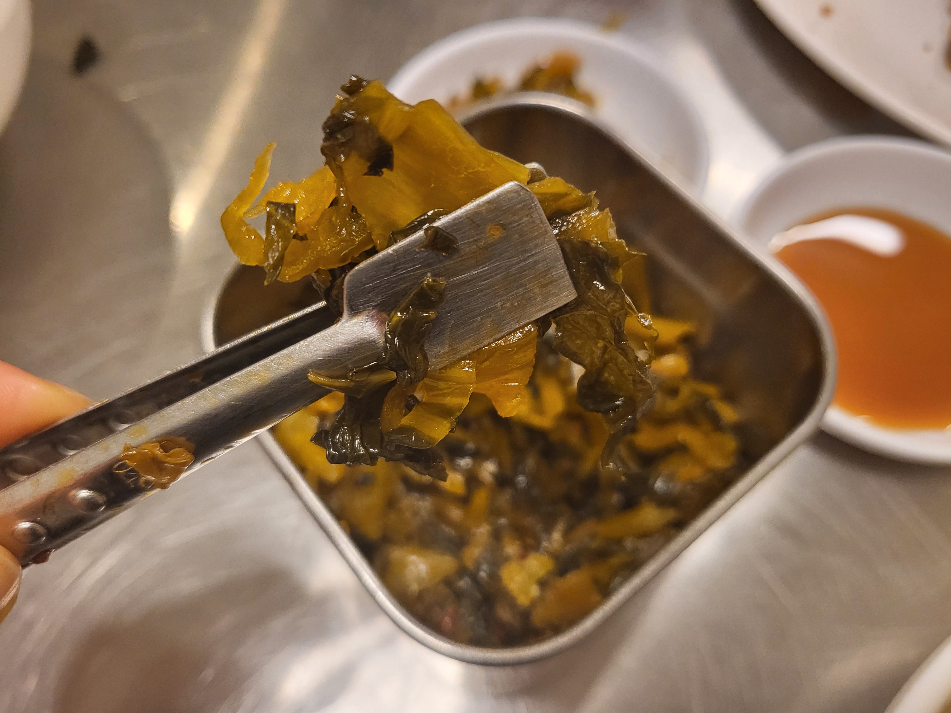 그리고 밑반찬으로 갓김치 볶음? 이 있는데