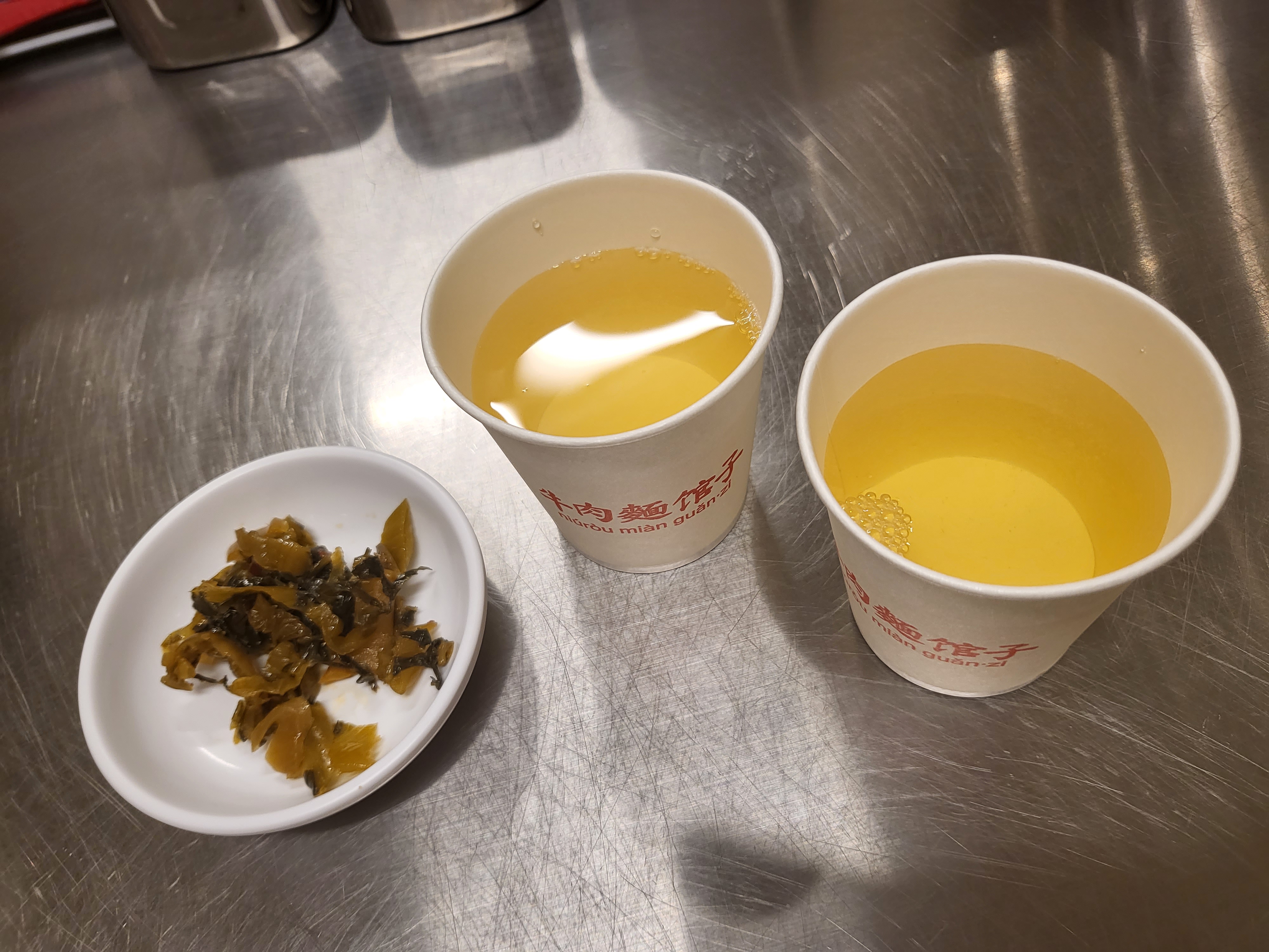 각 테이블에는 물 대신 차가 준비되어있다