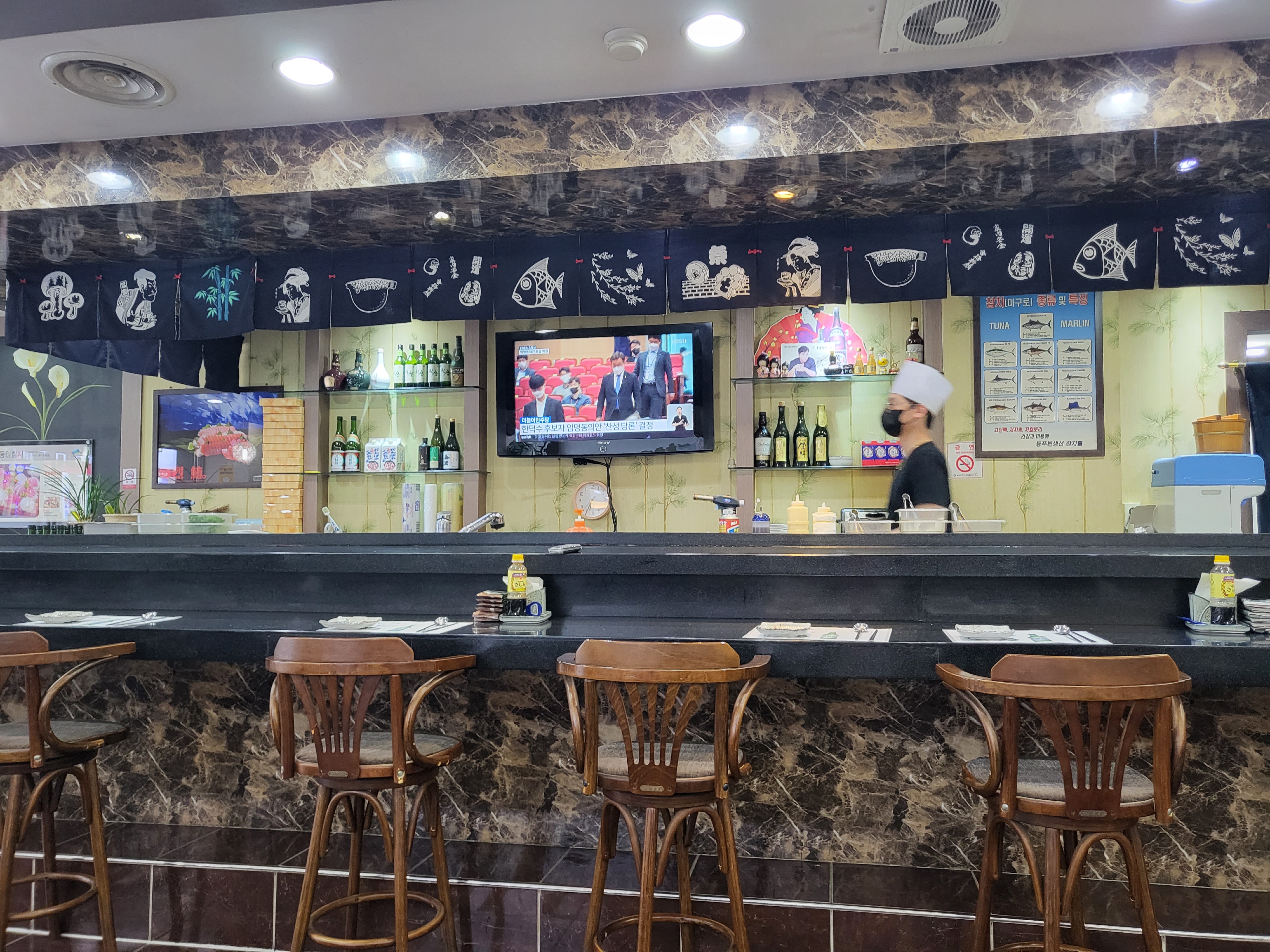 보통의 참치집과 비슷하게 다찌 테이블이 있고