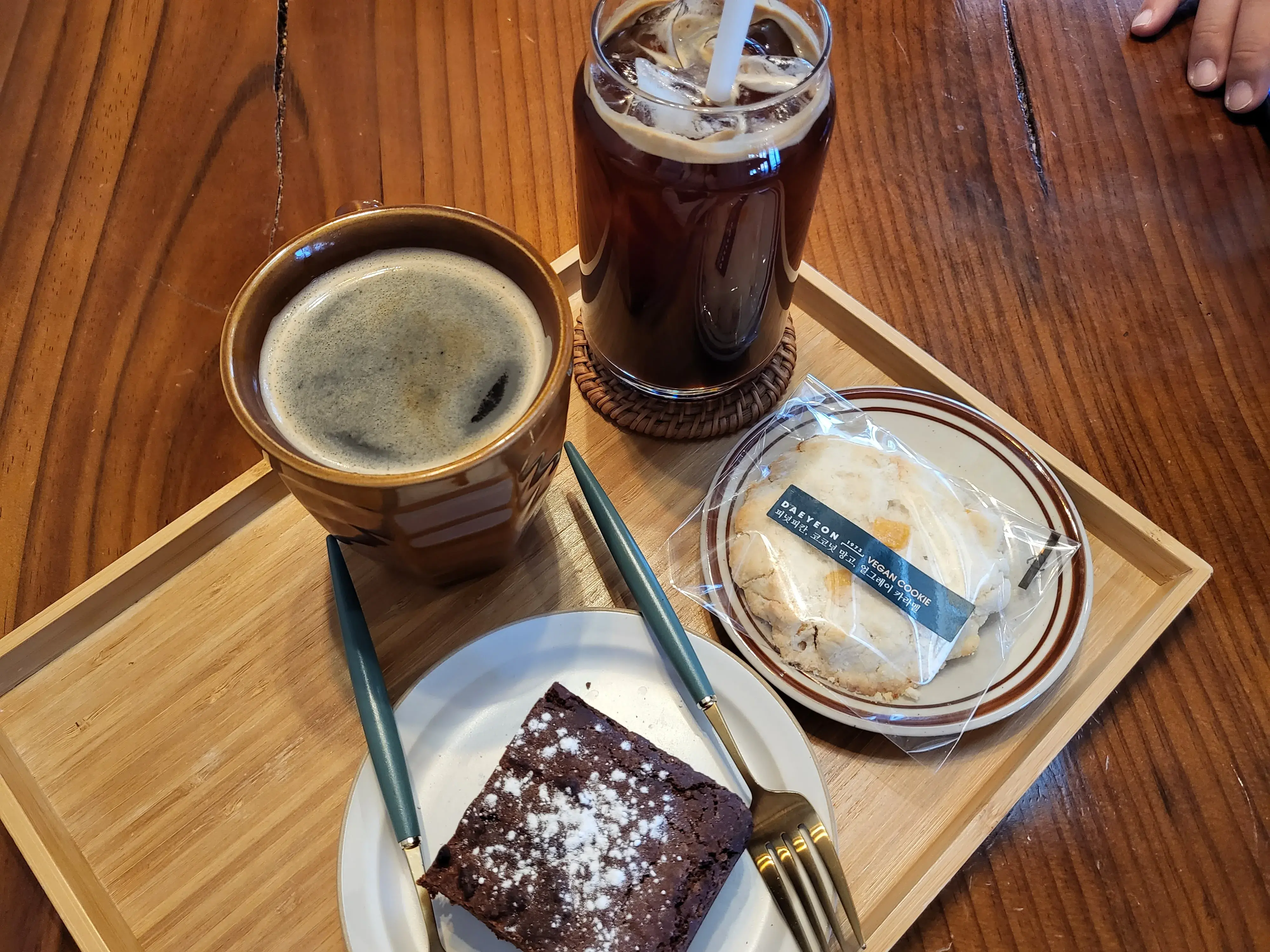 아메리카노 2, 비건 브라우니 1, 비건 쿠키 1을 주문했다