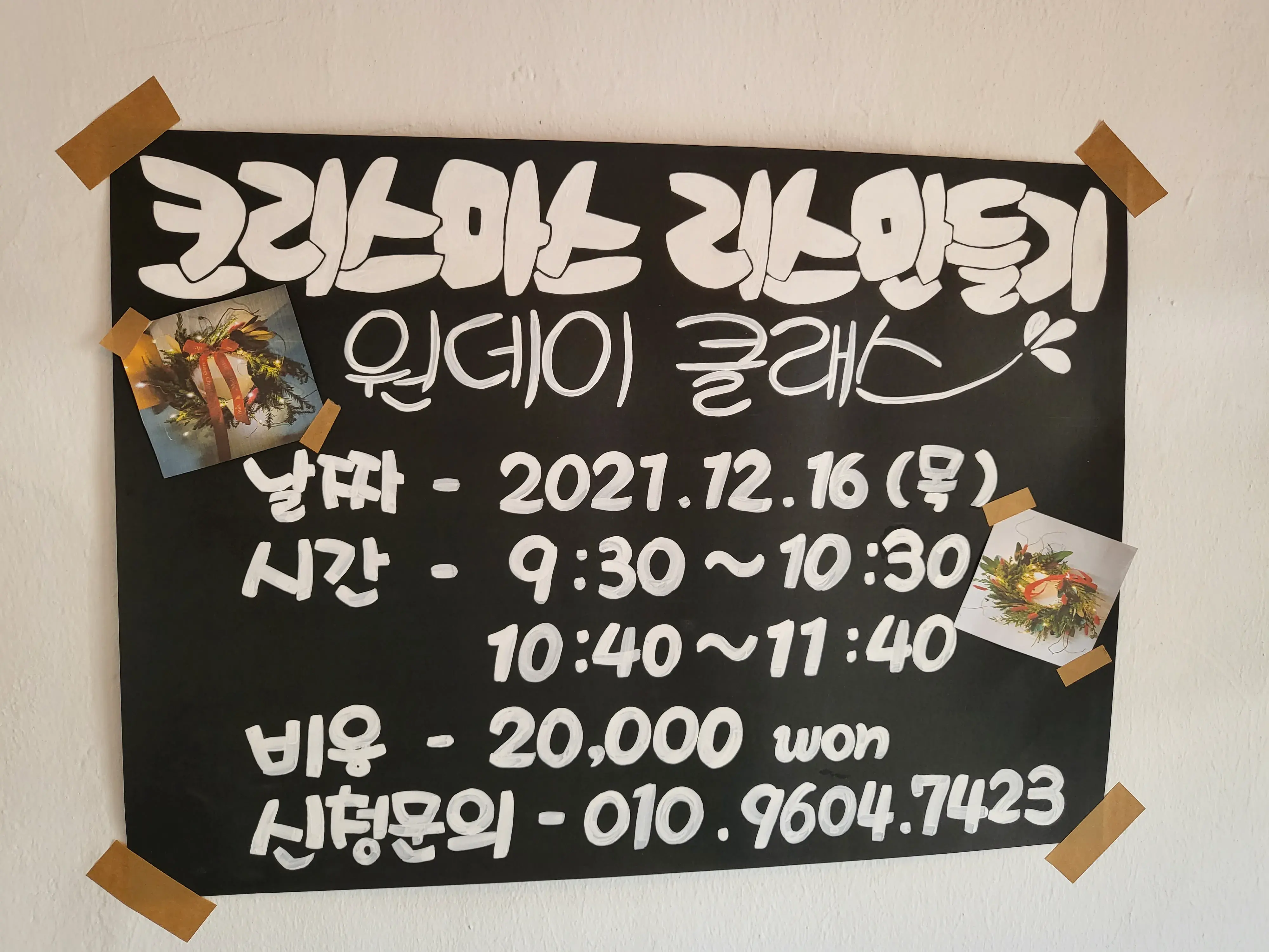 한쪽 벽면에는 '크리스마스 리스 만들기'