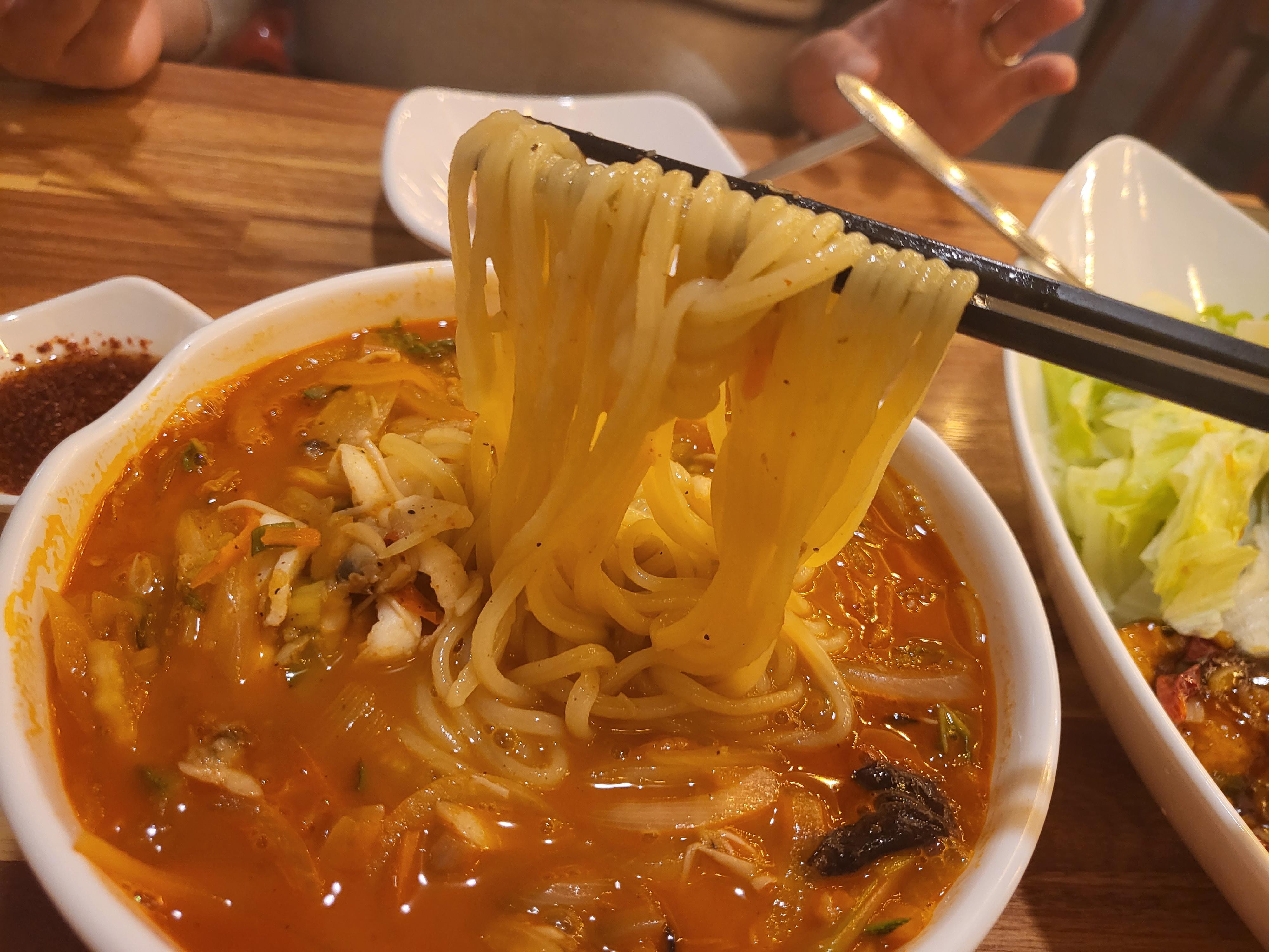 약간의 불맛이 나는 국물과 쫄깃한 면발