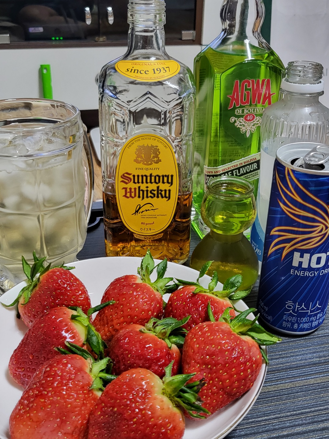 딸기를 안주삼아 홀짝홀짝 마셔본다