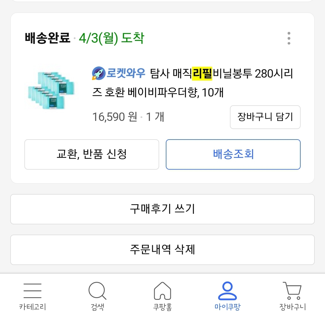 나는 쿠팡에서 호환 리필봉투를 주문했다